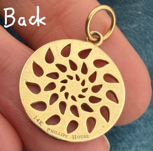 14k Yellow Gold Cut-Out Tear Drops Sun Burst Mandala Pendant. Phillips House.