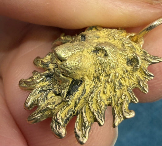 14k Yellow Gold LION Pendant w Wild Mane. 3/4" + 4.3g