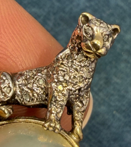 18k Gold Panther Pendant w Diamonds and Pearl. 1.25" + 6.8g