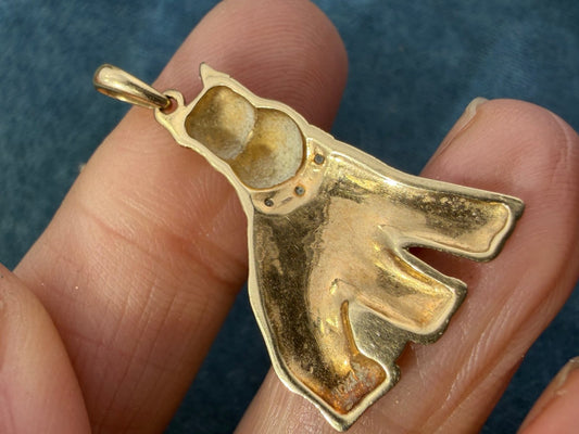 10k Yellow Gold Schnauzer Terrier Dog Pendant w Diamond Collar