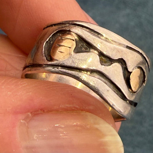 14k Gold and 925 Wide Tribal Moon Sun Clouds Waves Eternity Band Ring