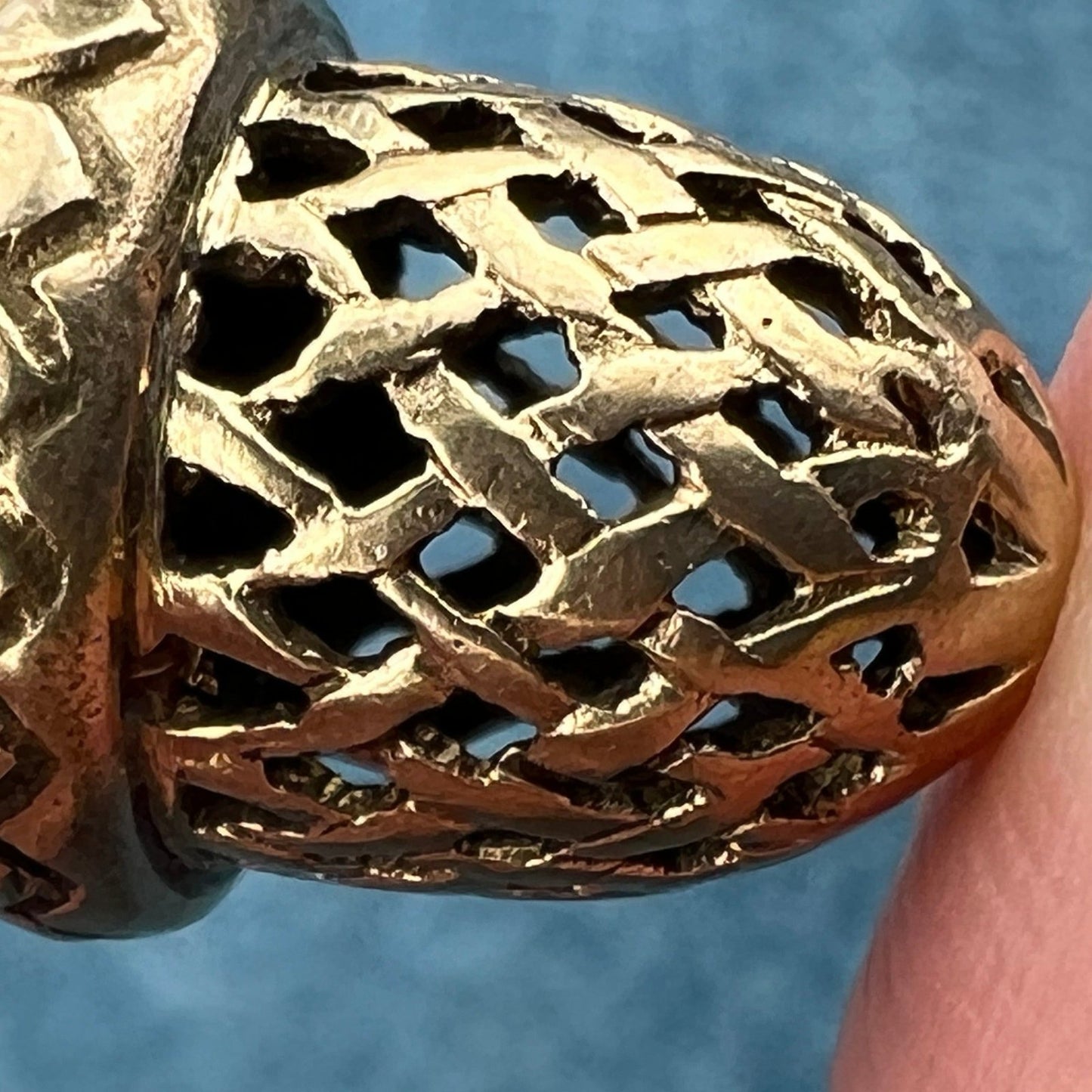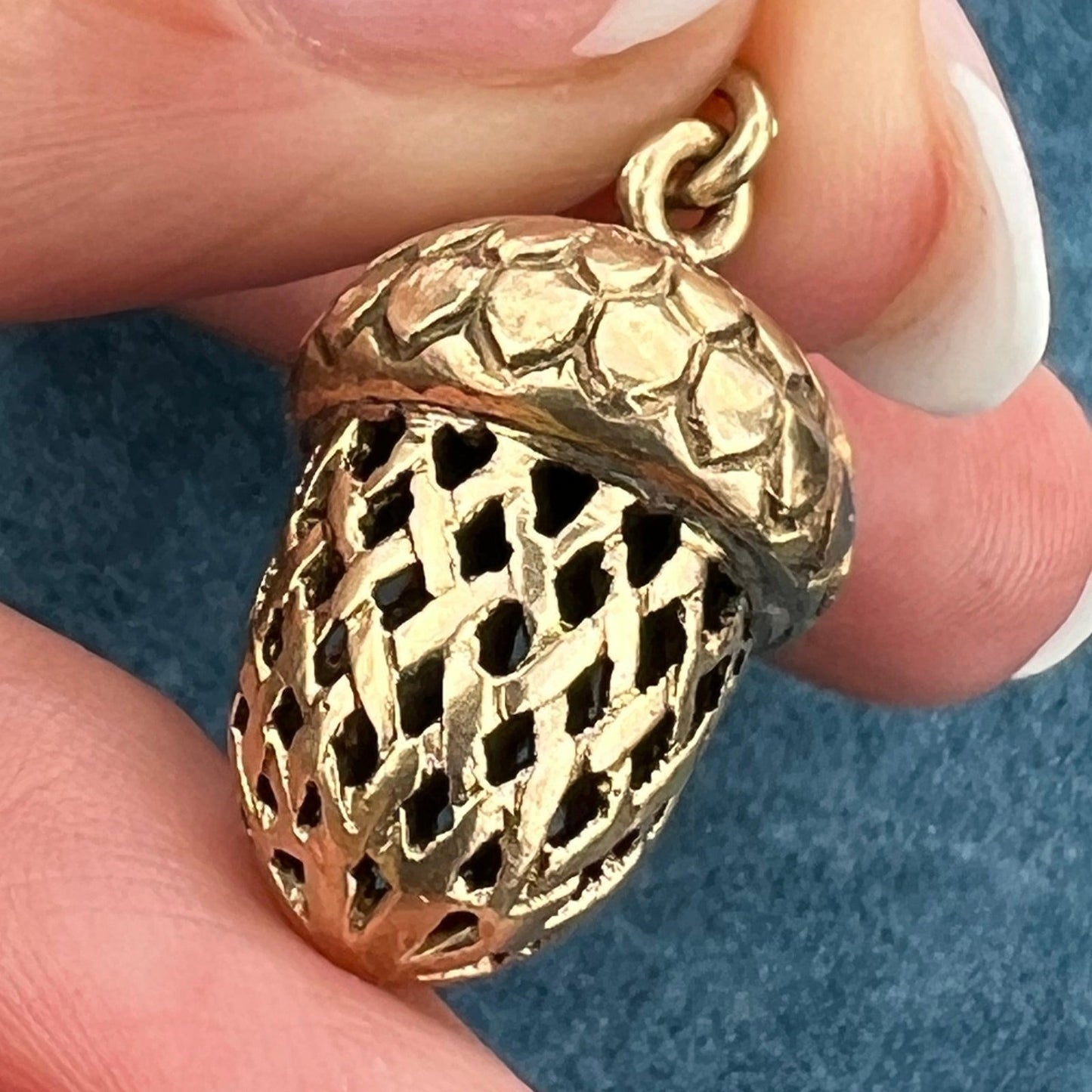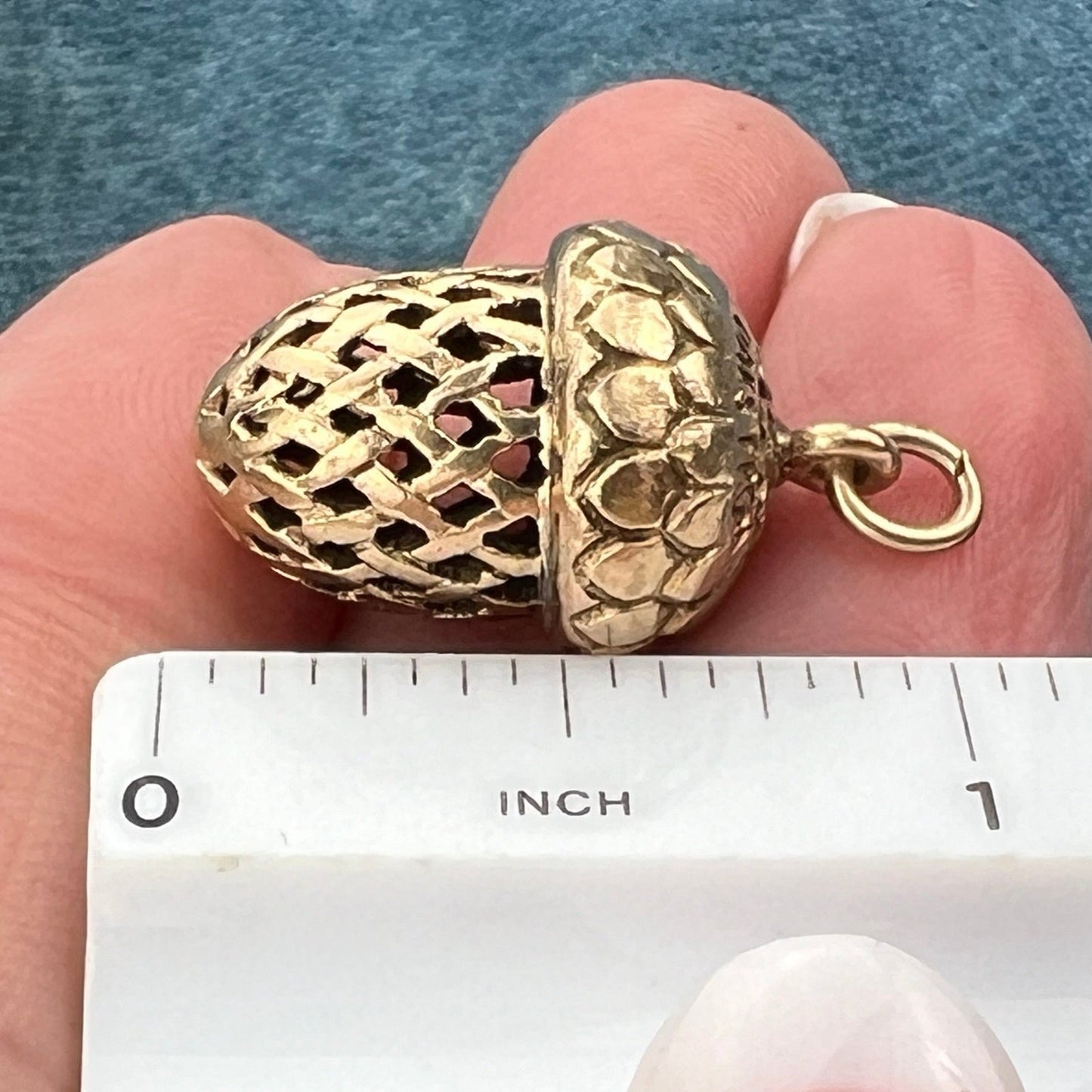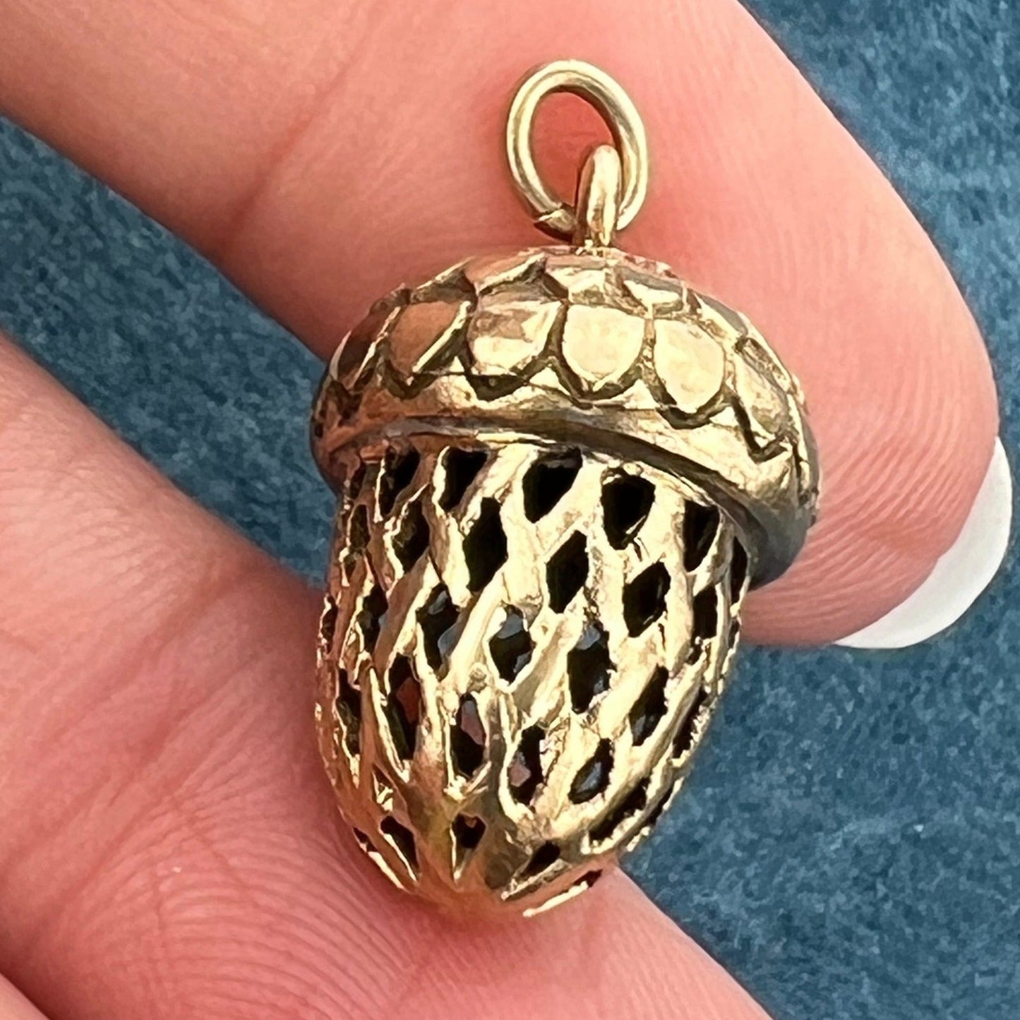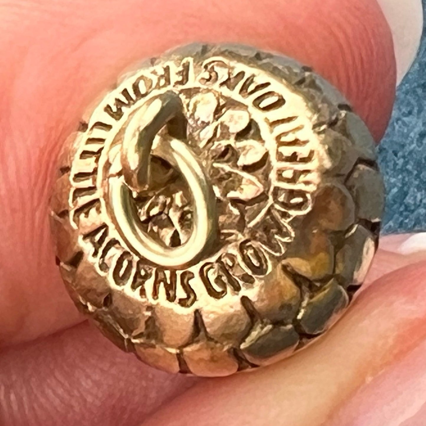 What a find! We've never come across a similar pendant in many years dealing in vintage jewelry. For sale is a 10k yellow gold acorn pendant with an engraved message "From Little Acorns Grow Great Oaks".