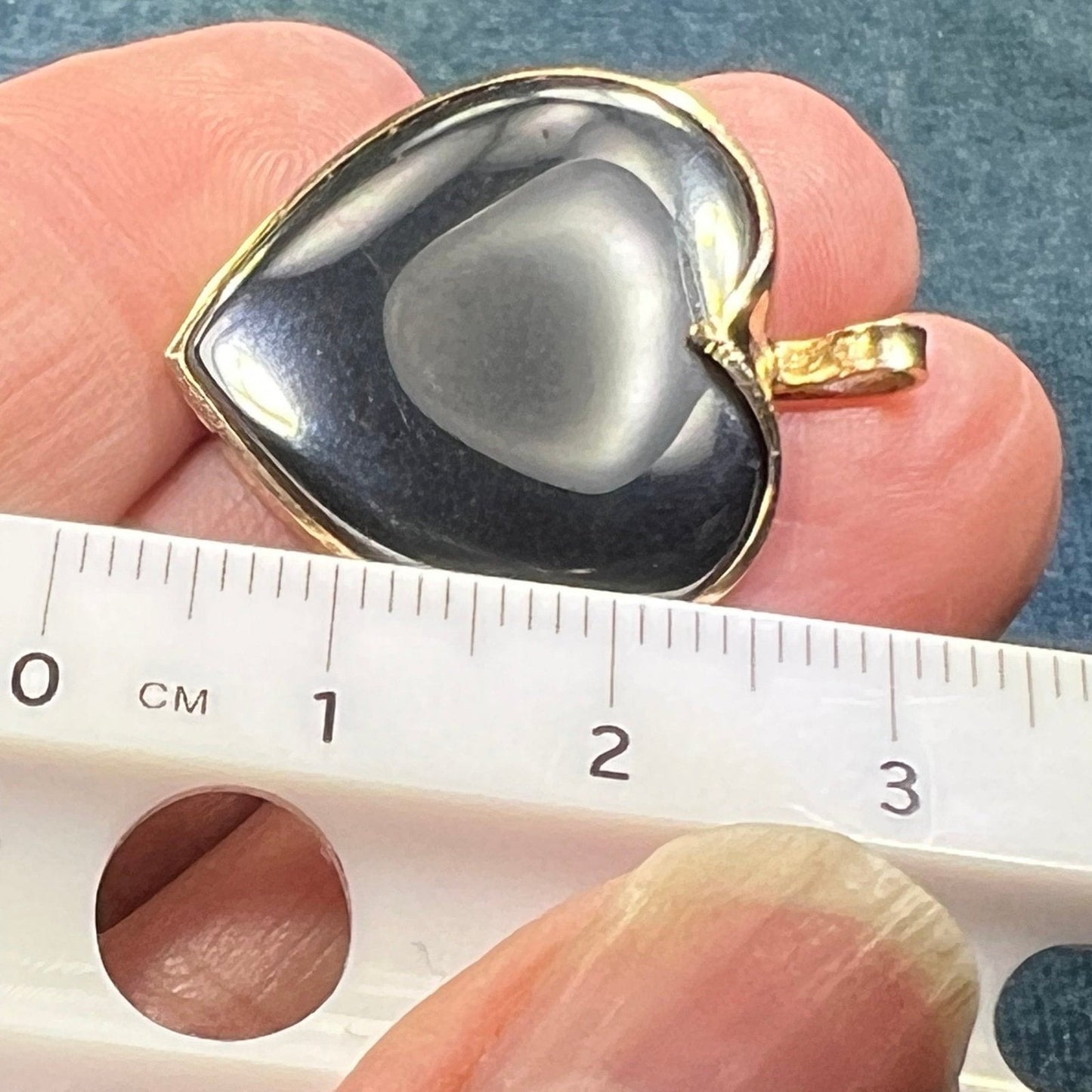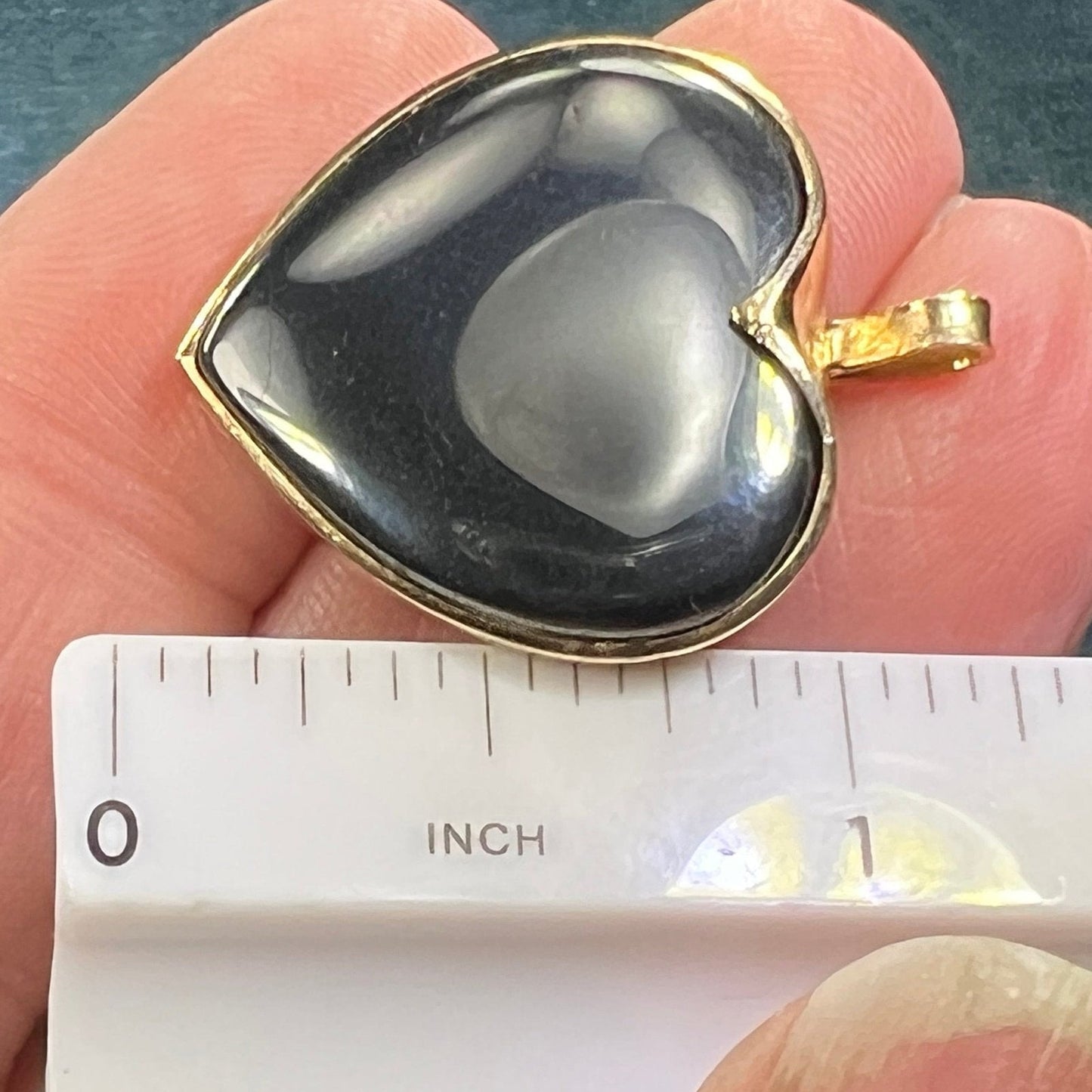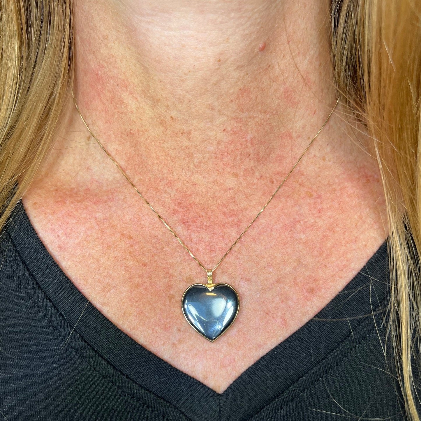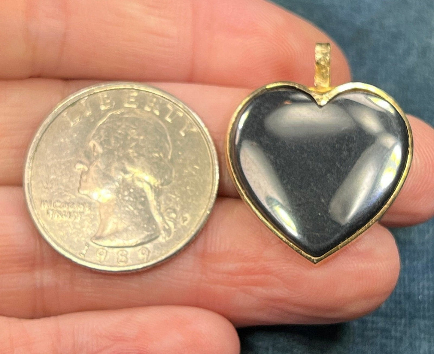 10k Gold Bezel-Set Hematite HEART Pendant. 1.25" **VIDEO**