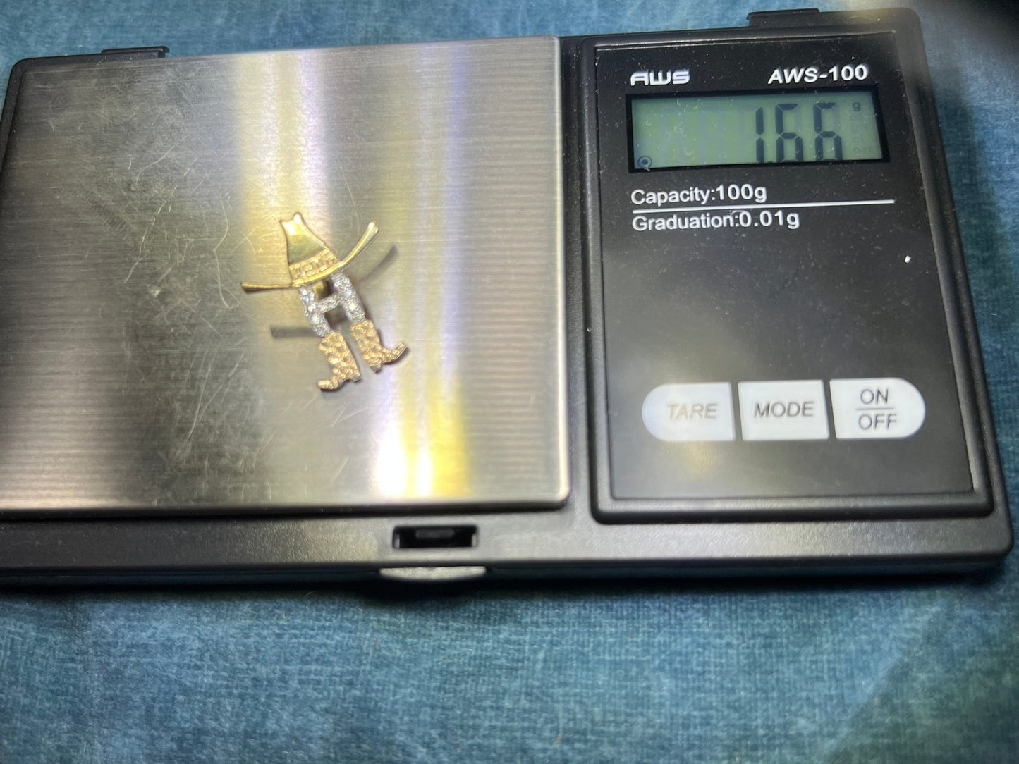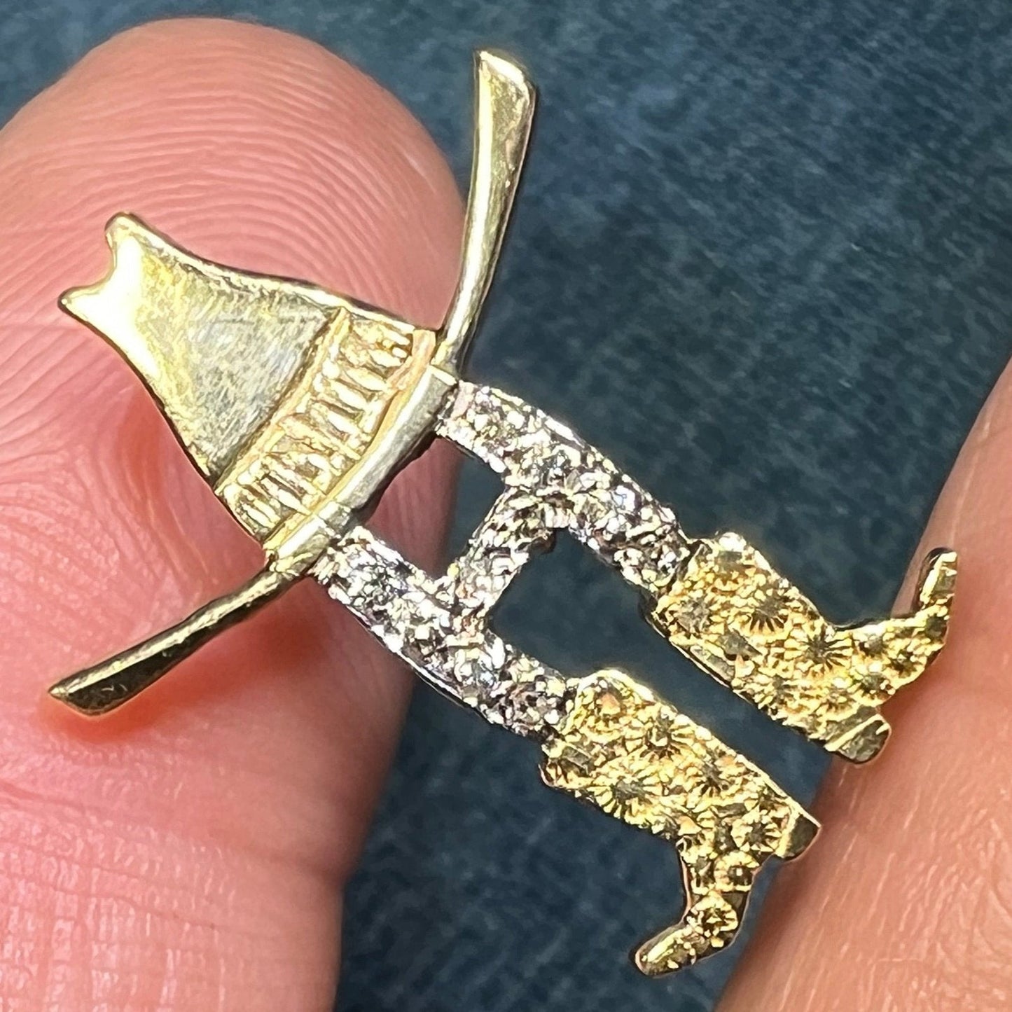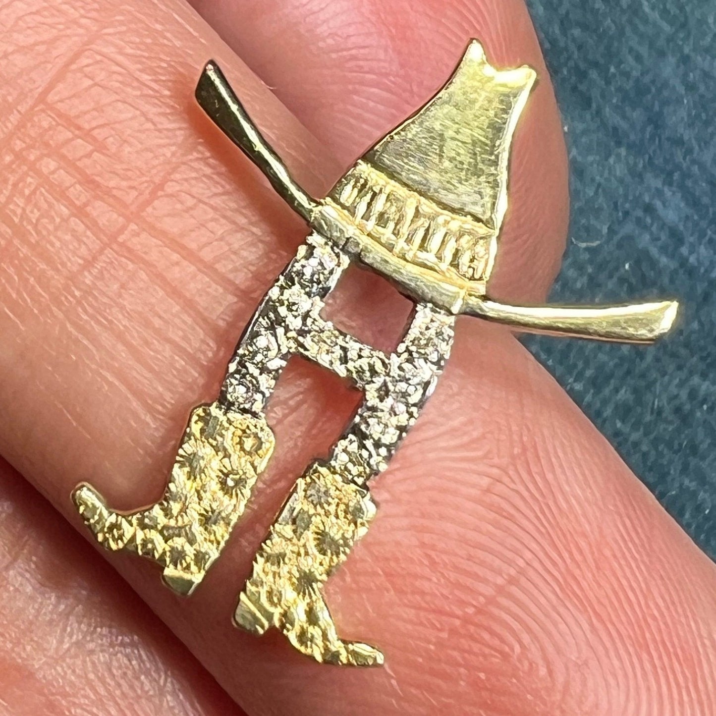 14k Gold Cowboy Cowgirl Hat + Boots Pendant w Diamonds. Tiny!