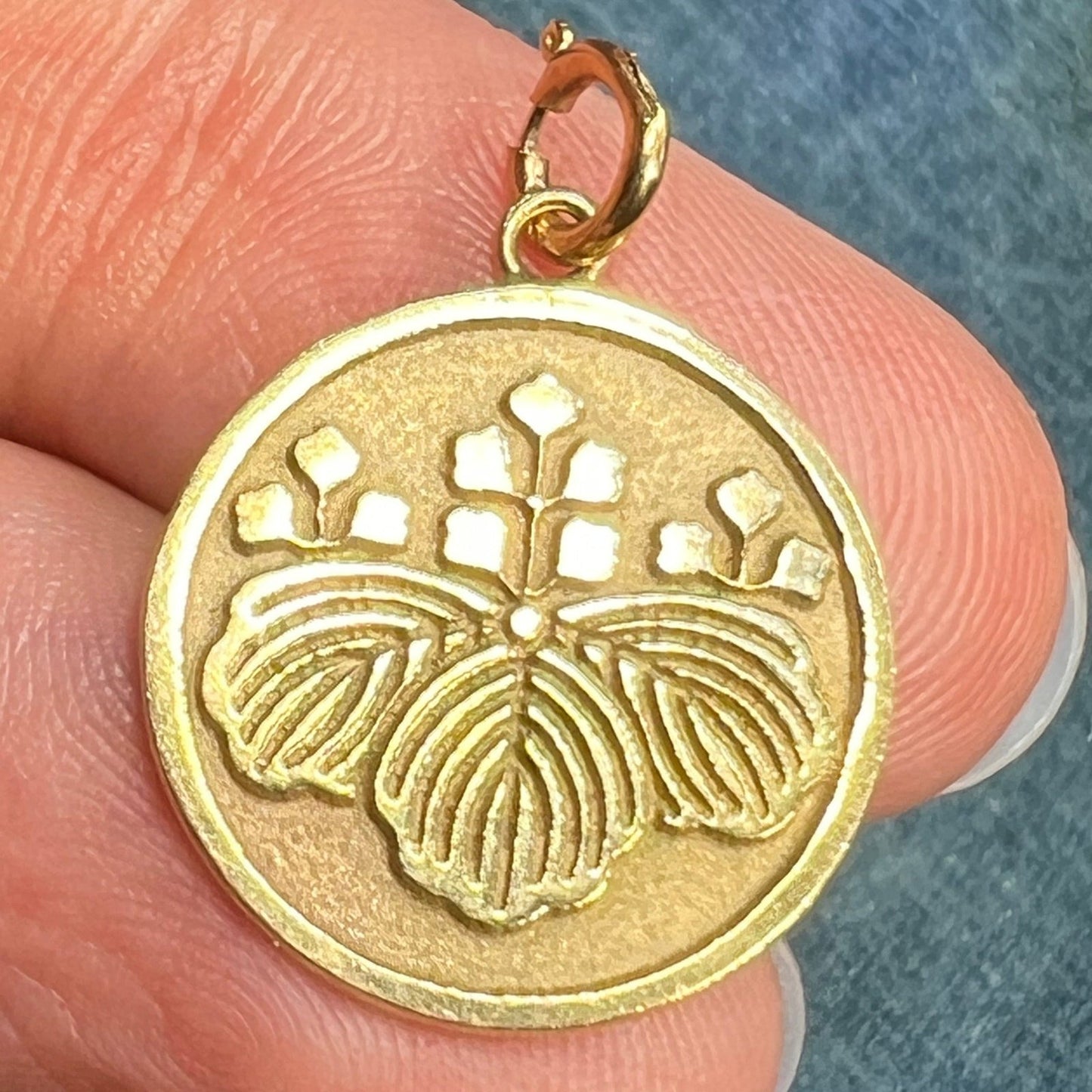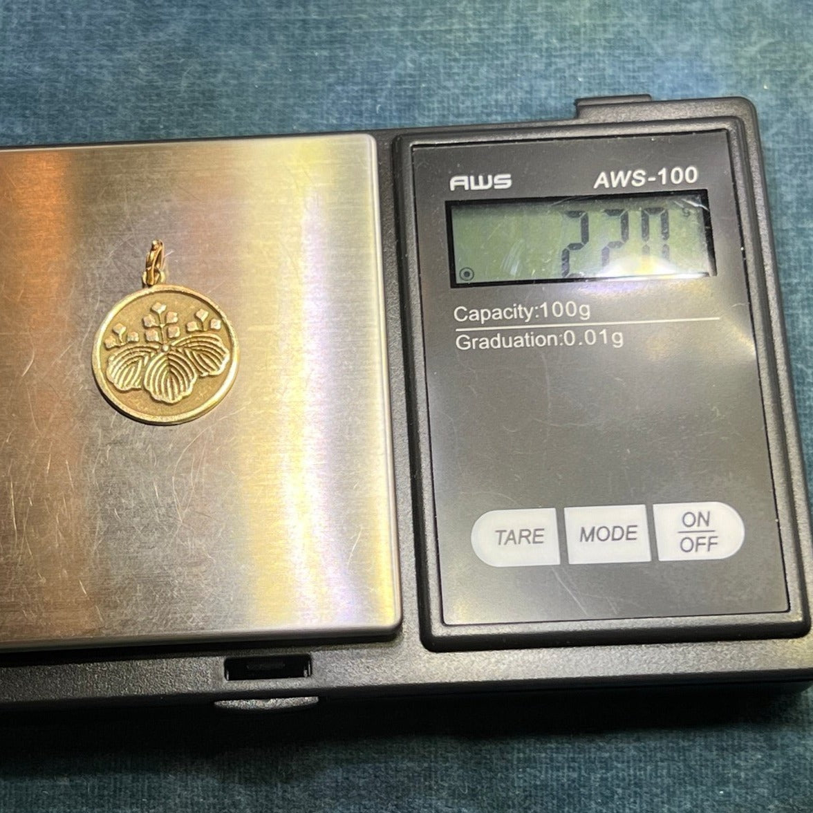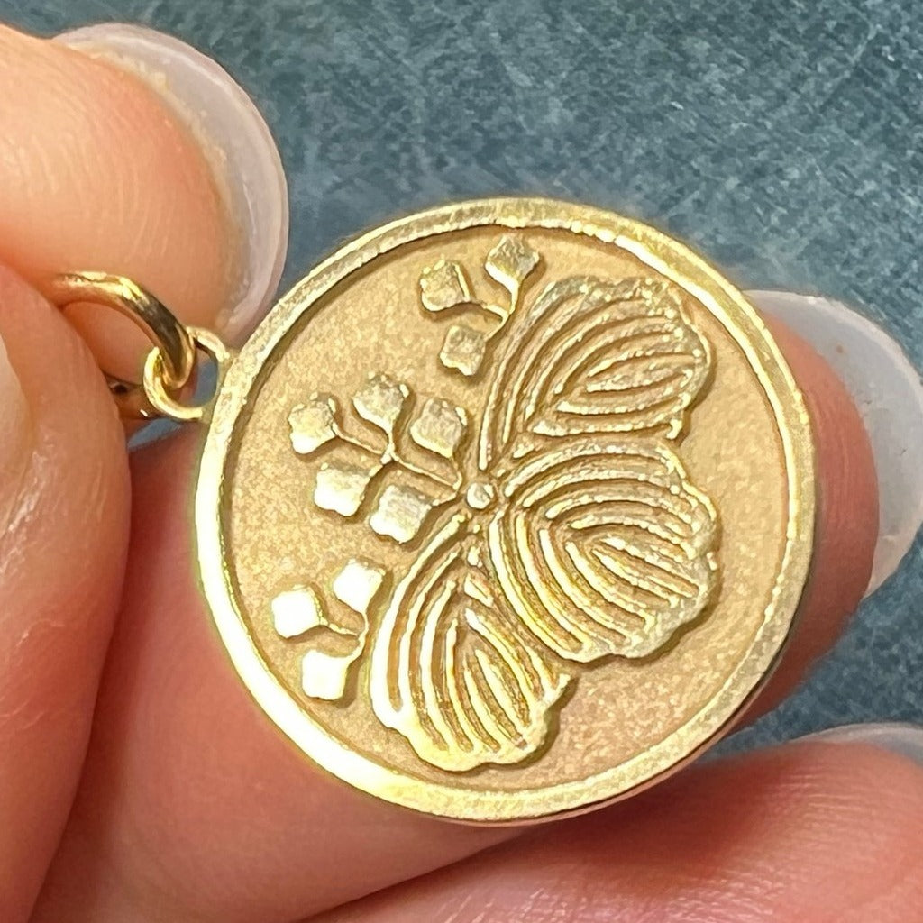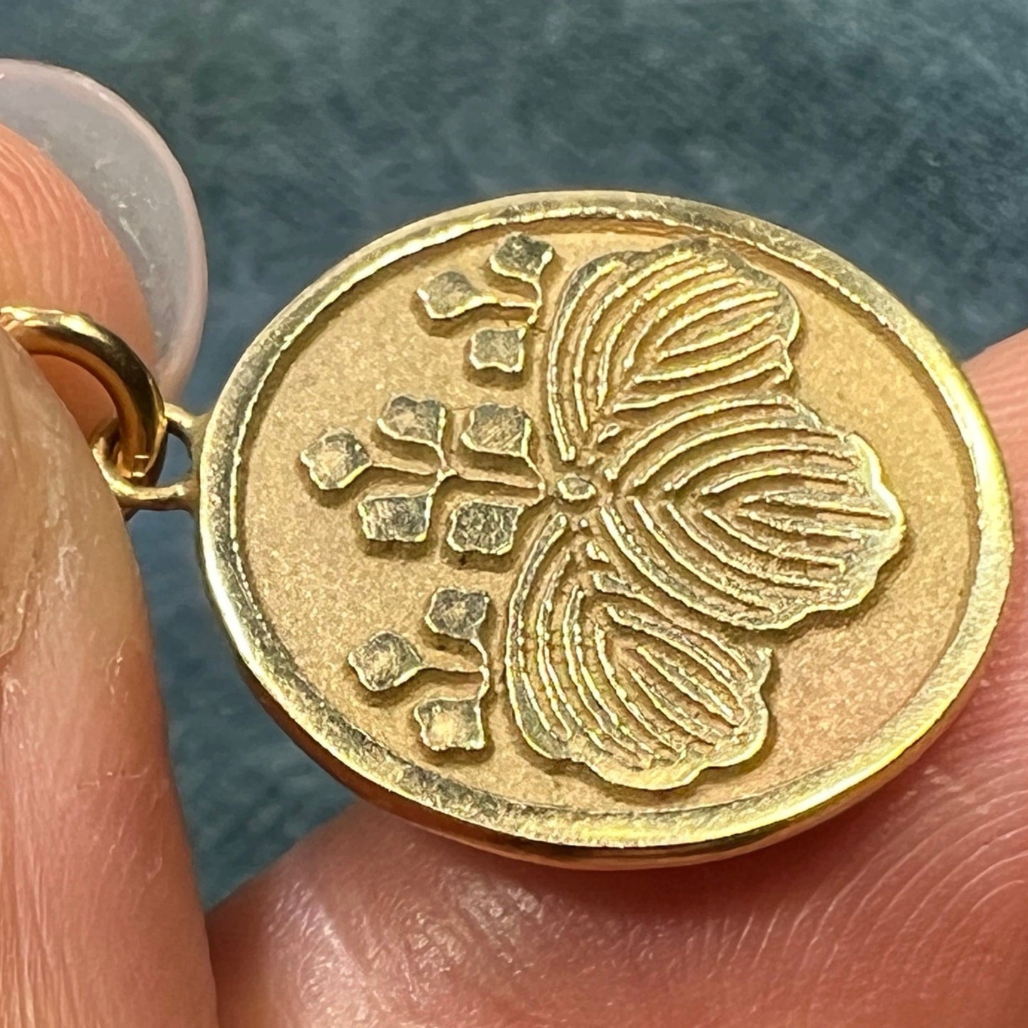 14k Gold Japanese National Seal Kamon "Paulownia" Flower Pendant