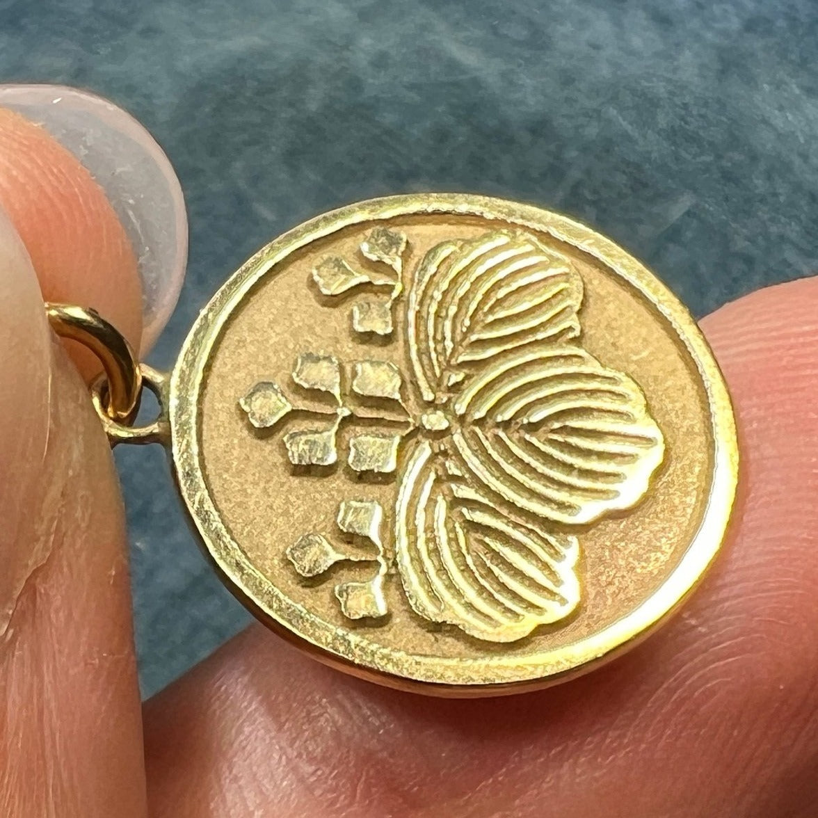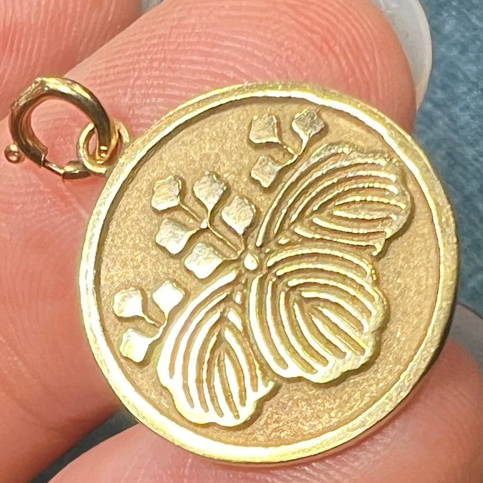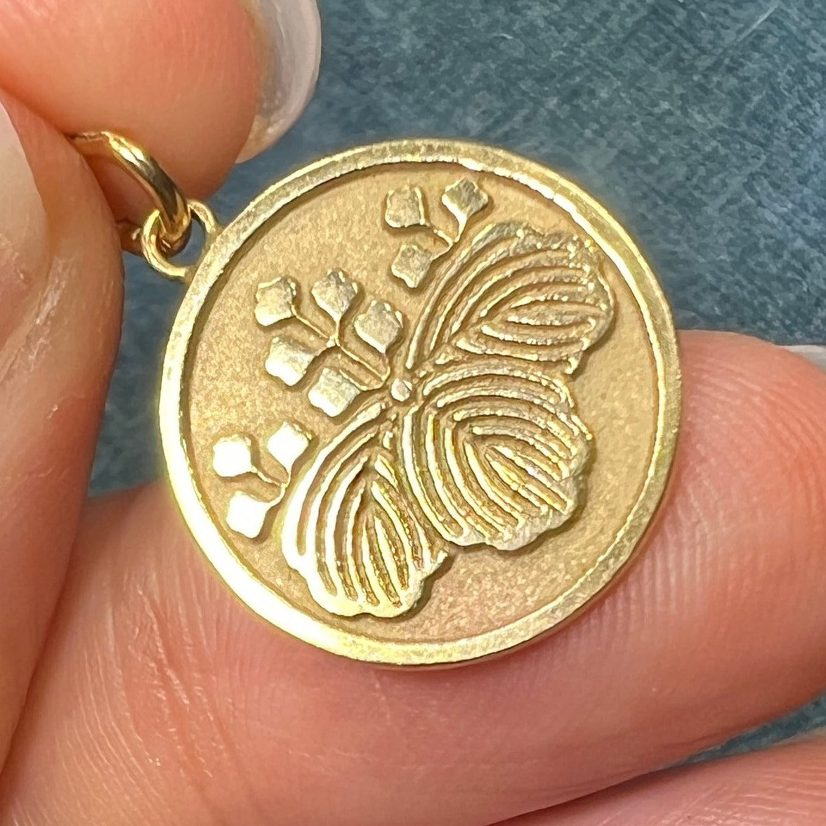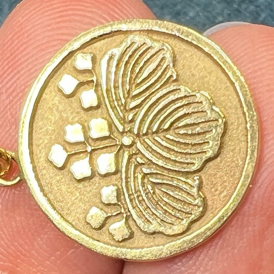 14k Gold Japanese National Seal Kamon "Paulownia" Flower Pendant