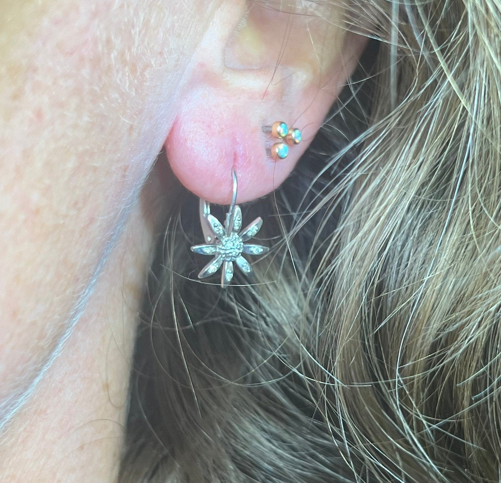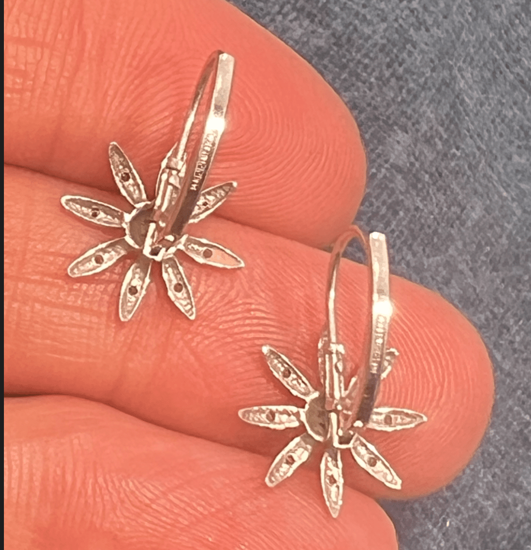 14k White Gold Diamond DAISY Flower Leverback Earrings