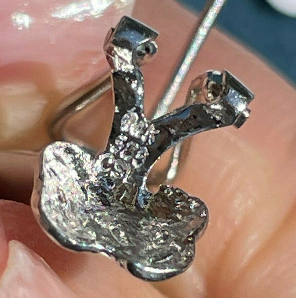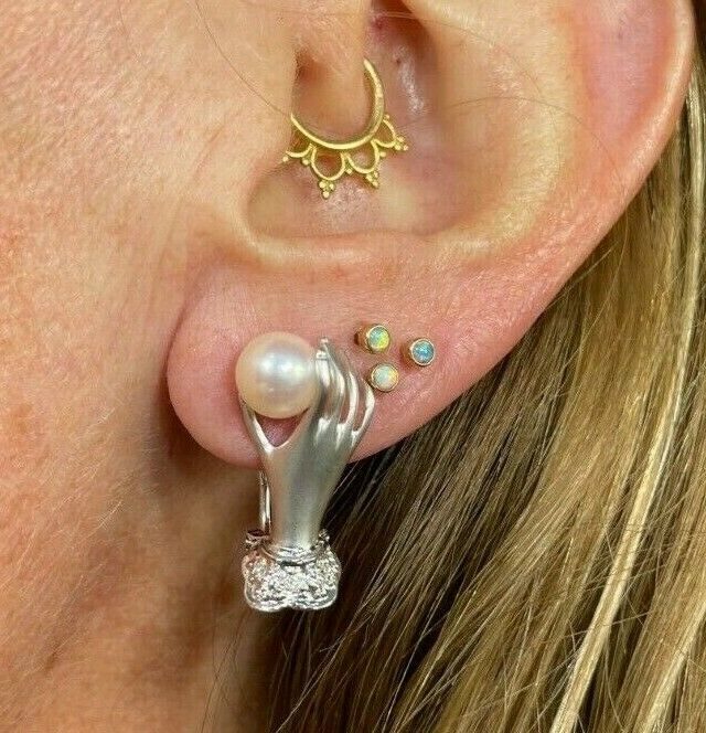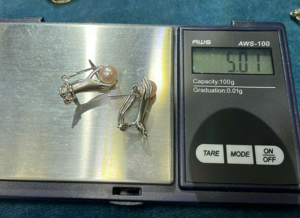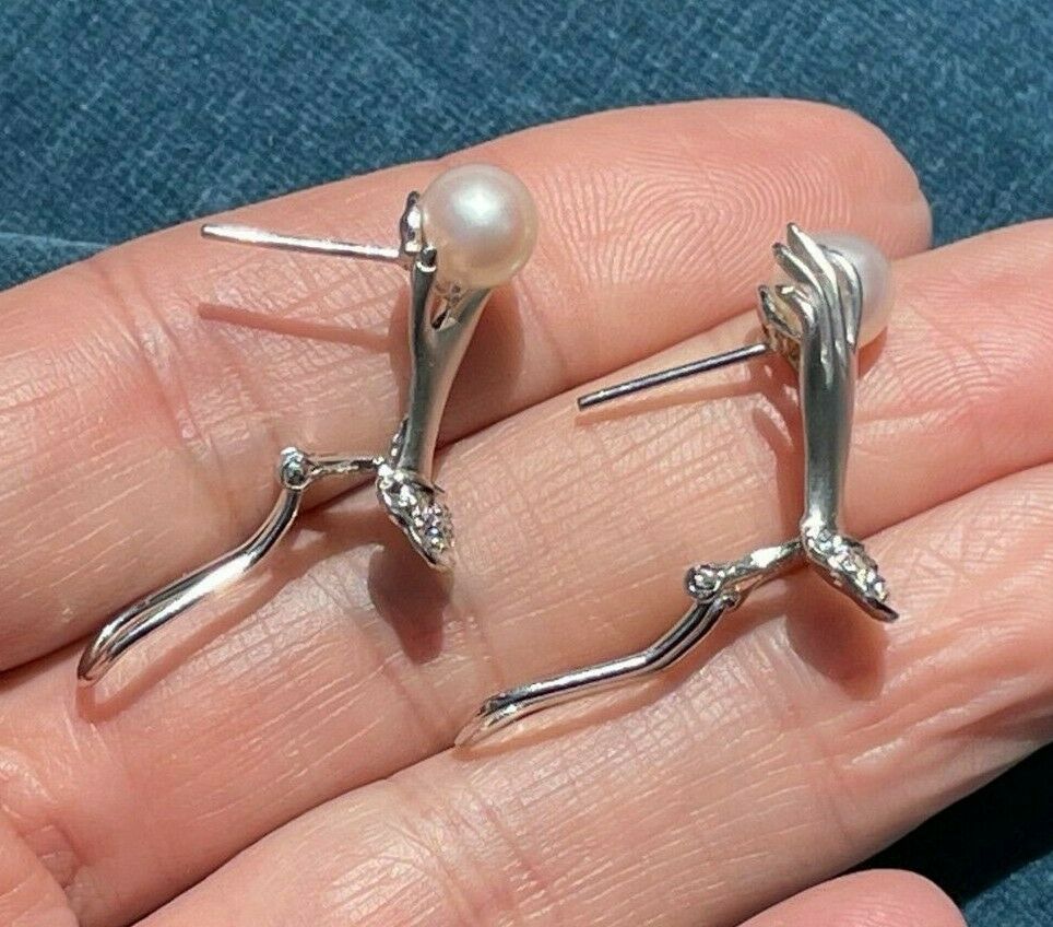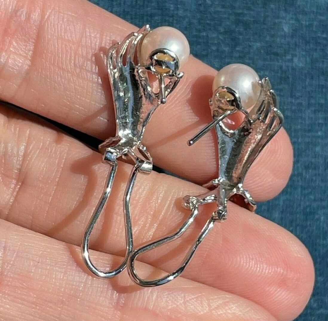 14k White Gold Diamond & Pearl Antique HAND Earrings. OMEGABACKS_21_300