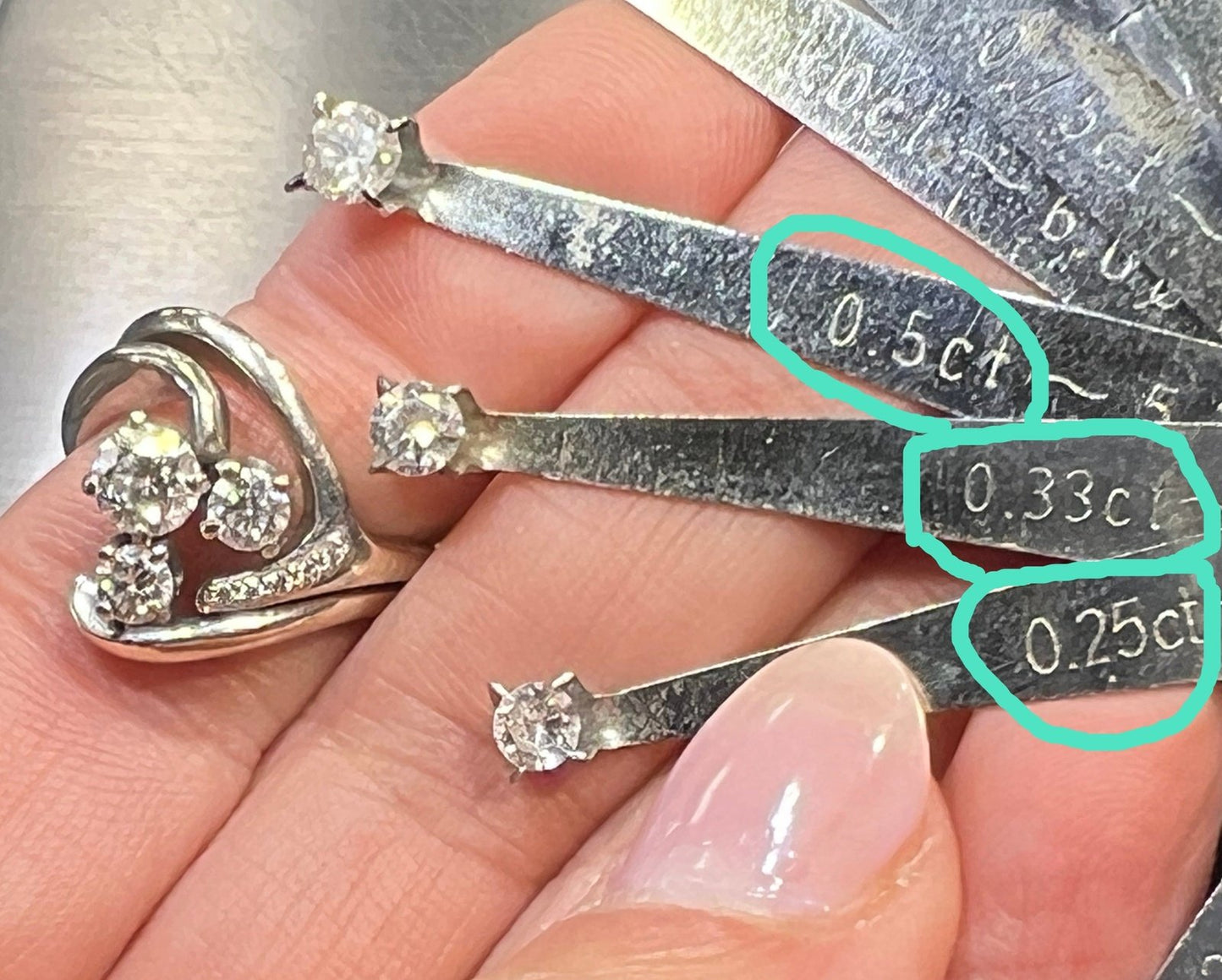Gems: Natural diamonds (large diamond is 5 mm, small diamonds are 3.5 mm)