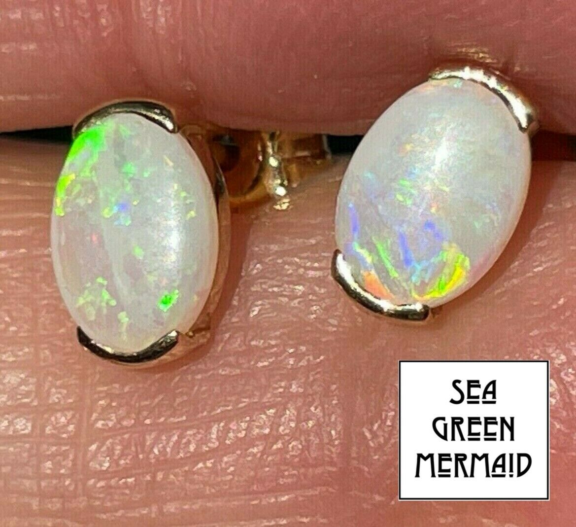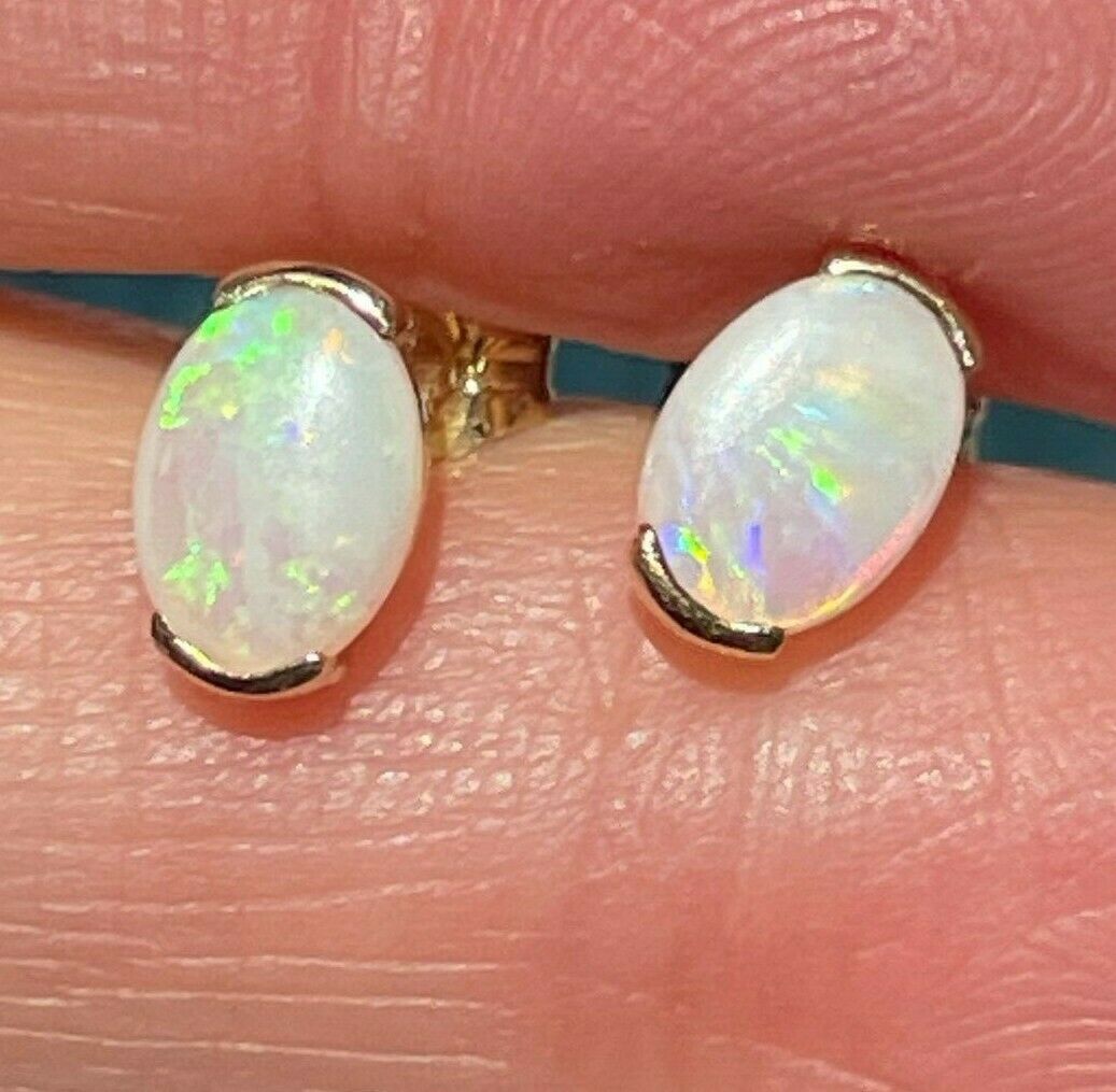 14k Yellow Gold Australian Pinfire Crystal Opal Bezel-Set Earrings**VIDEO**