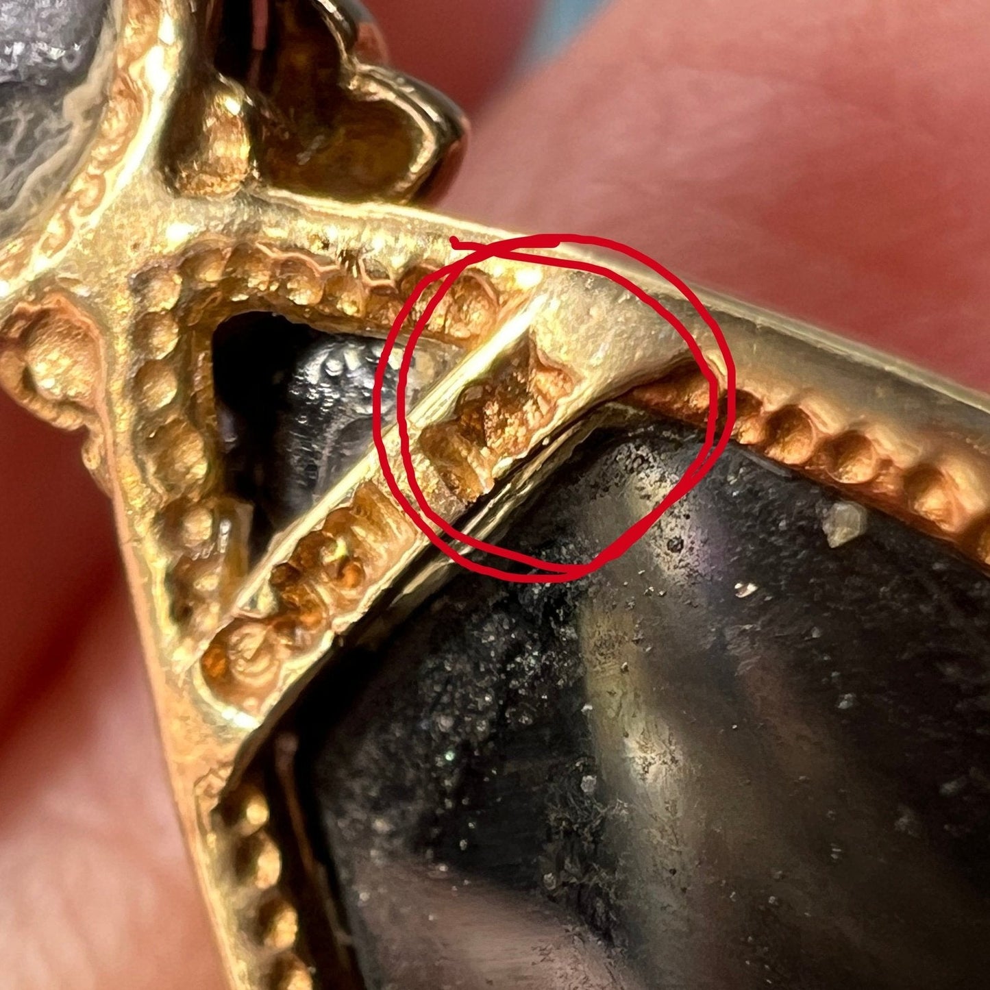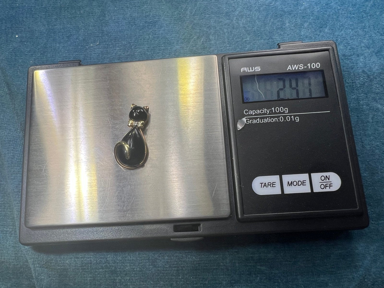 14k Yellow Gold Black Onyx Kitty Cat Pendant w Diamond Collar