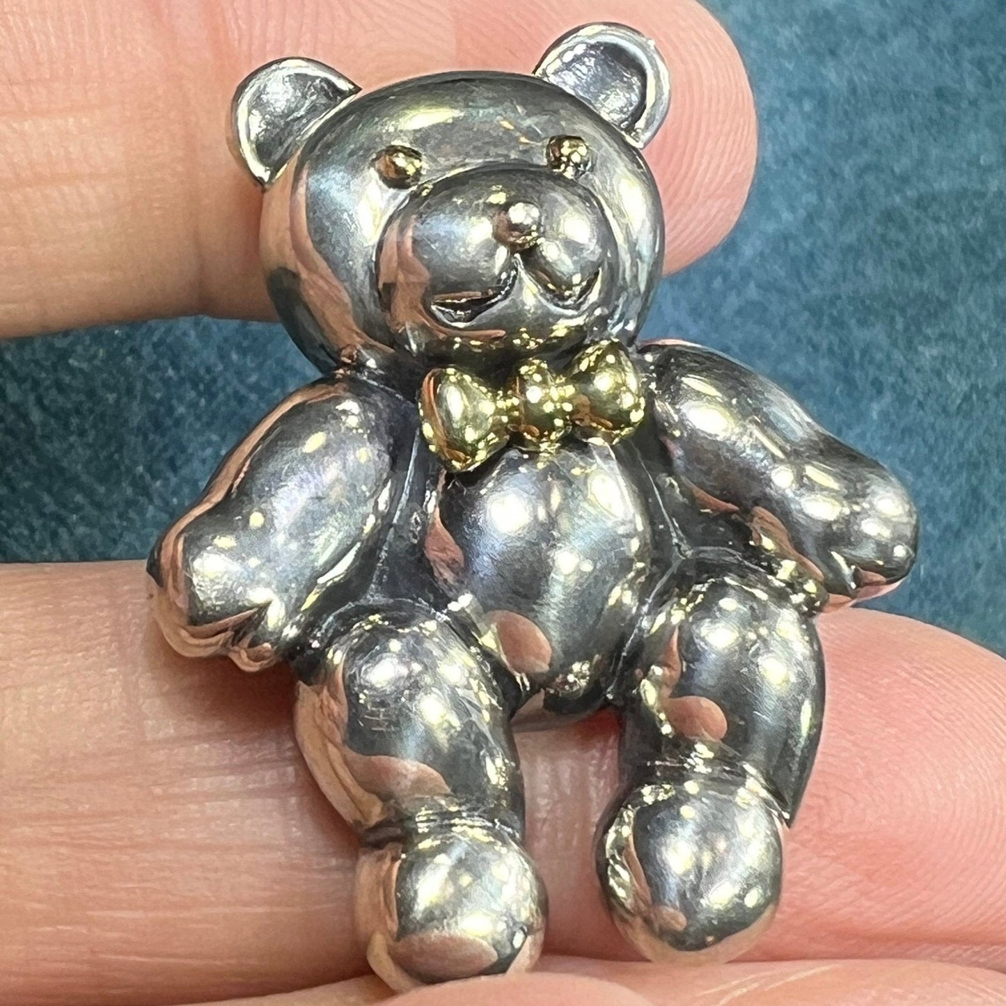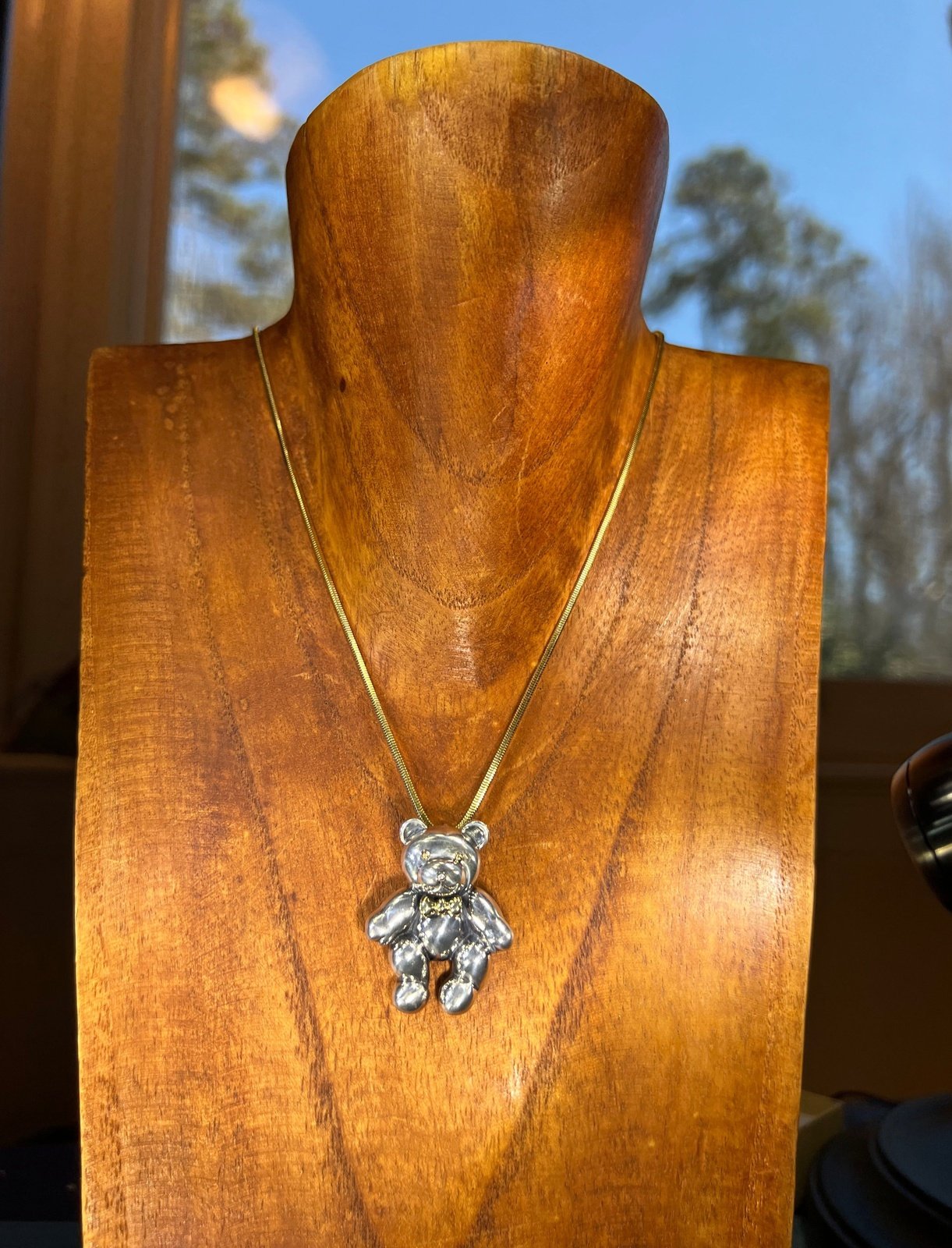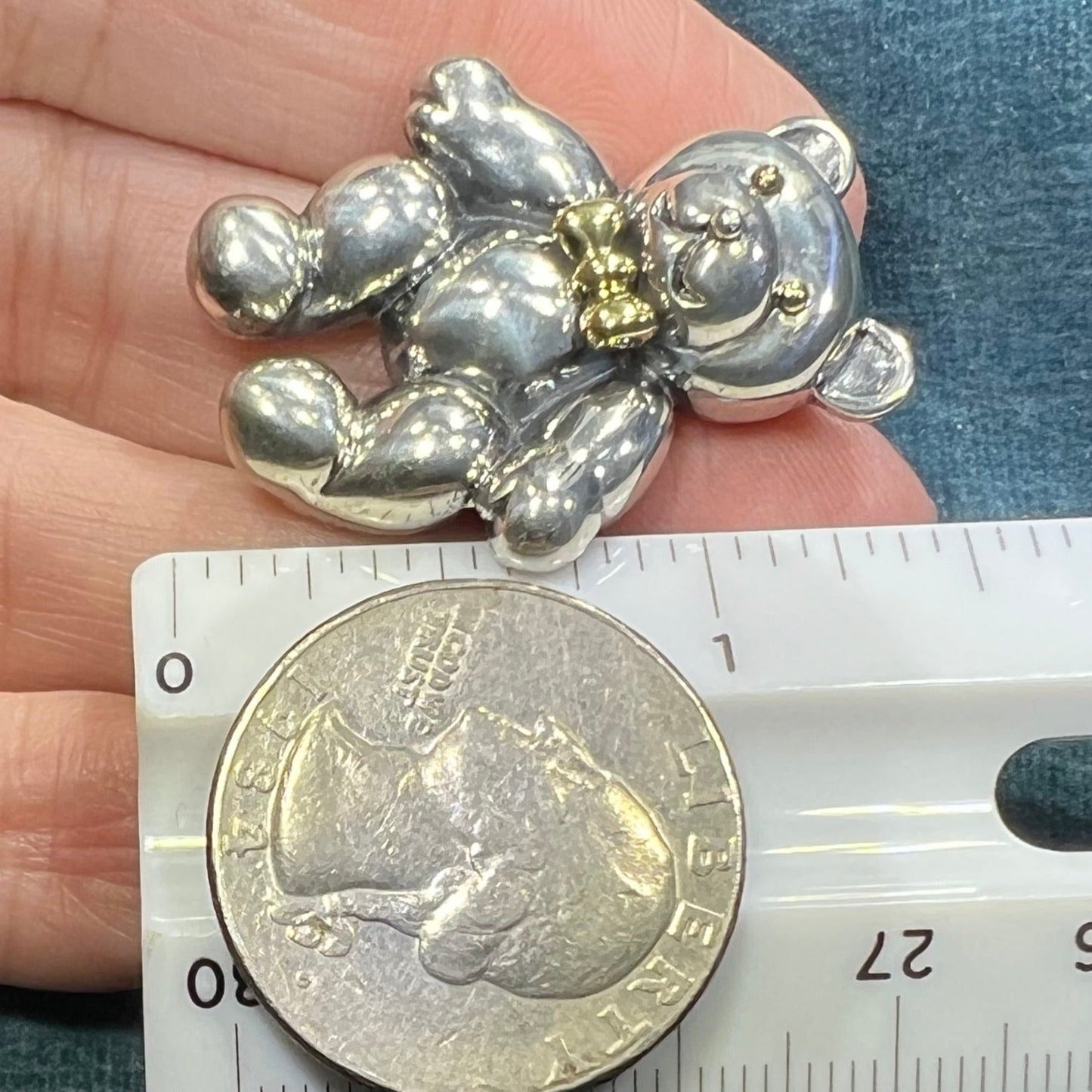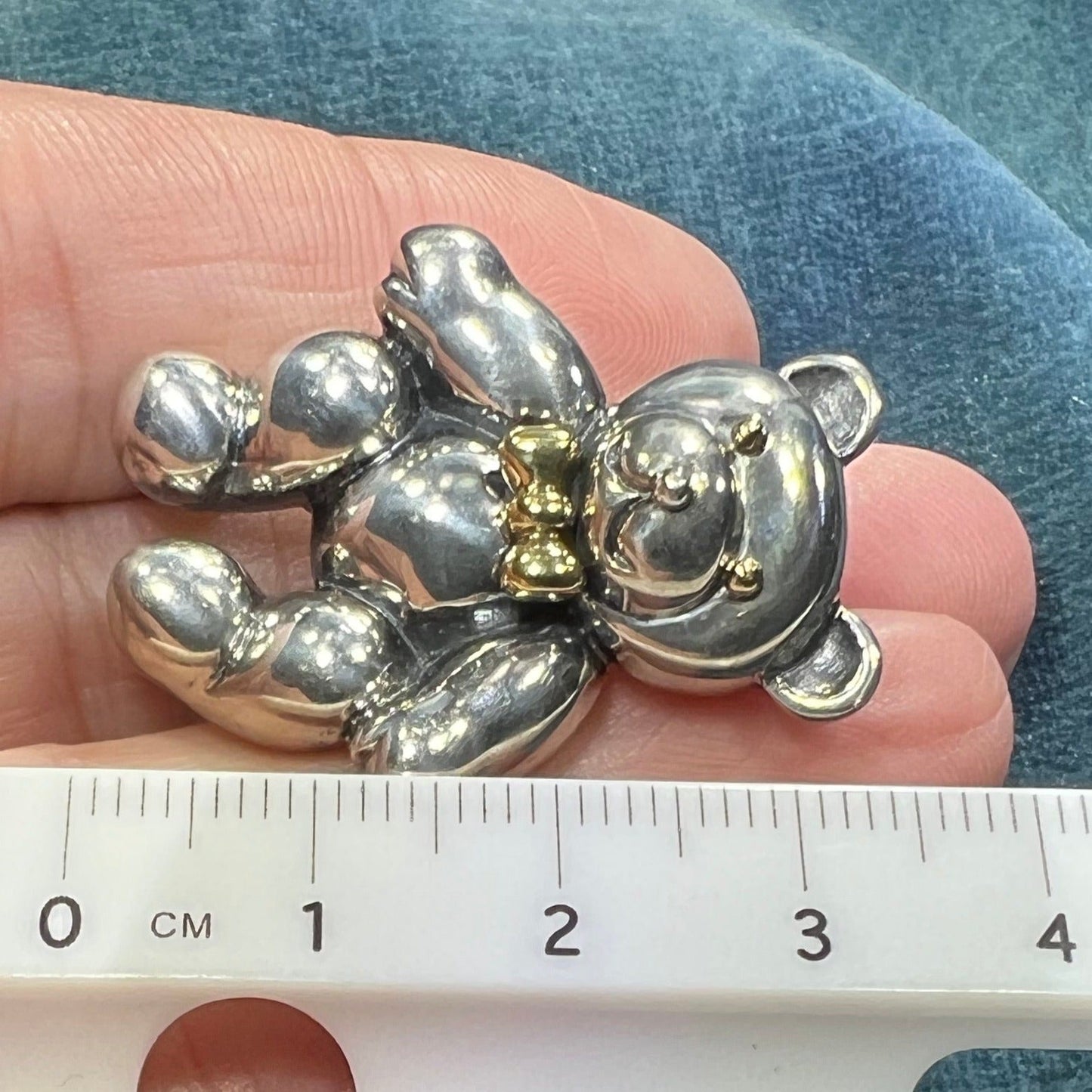 18k Yellow Gold + Sterling TEDDY BEAR Pendant. 1.4" + 12g