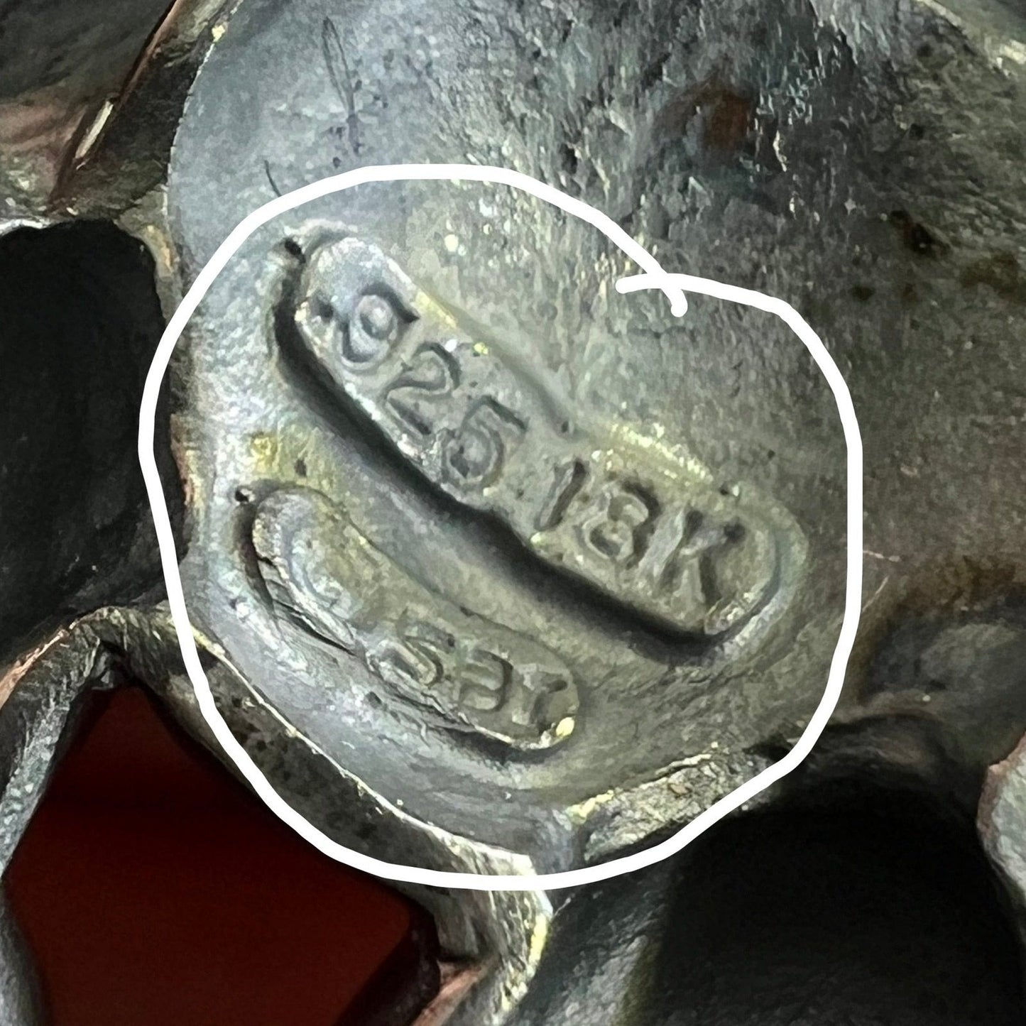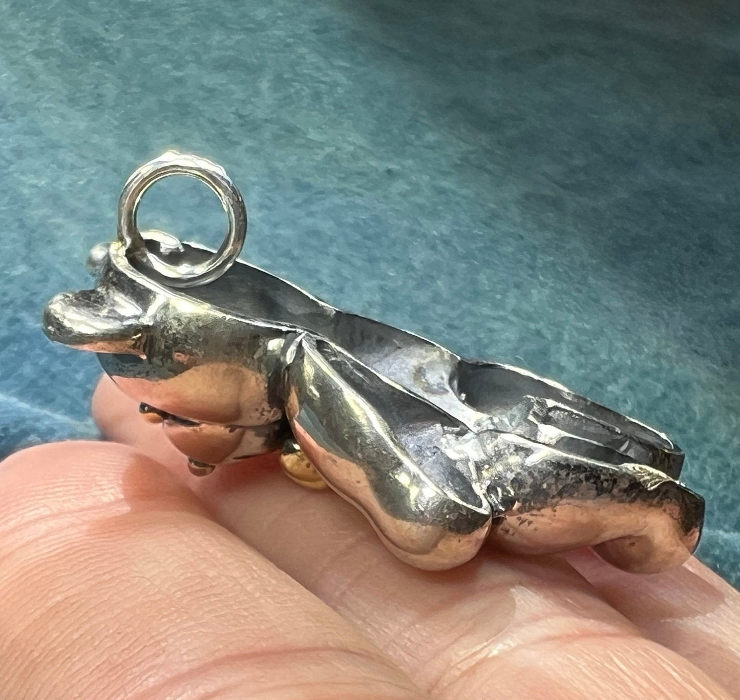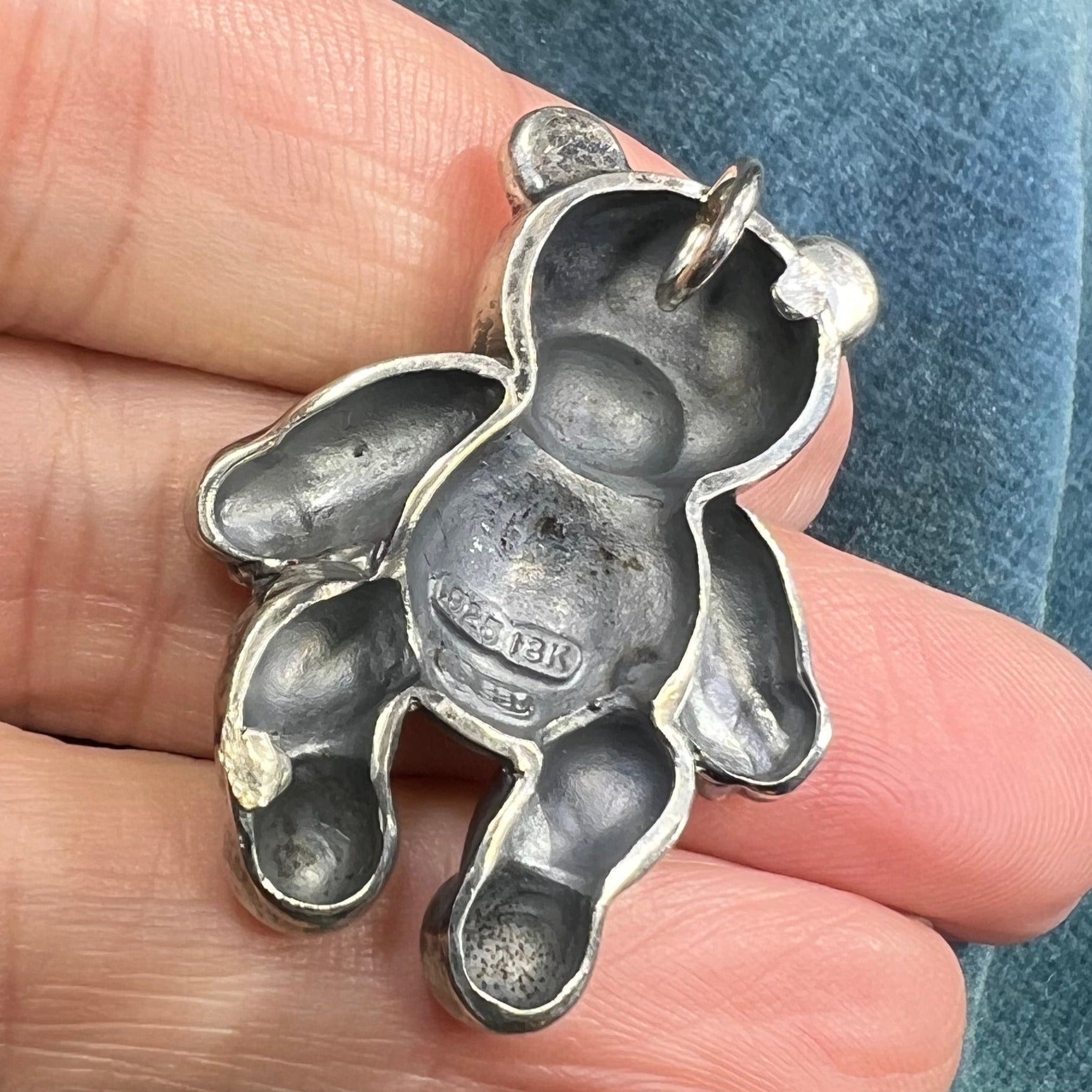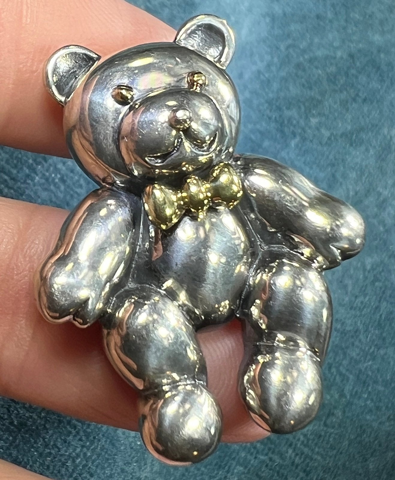 18k Yellow Gold + Sterling TEDDY BEAR Pendant. 1.4" + 12g