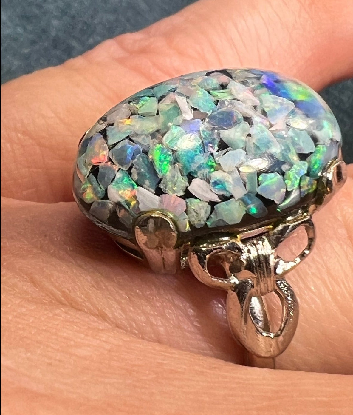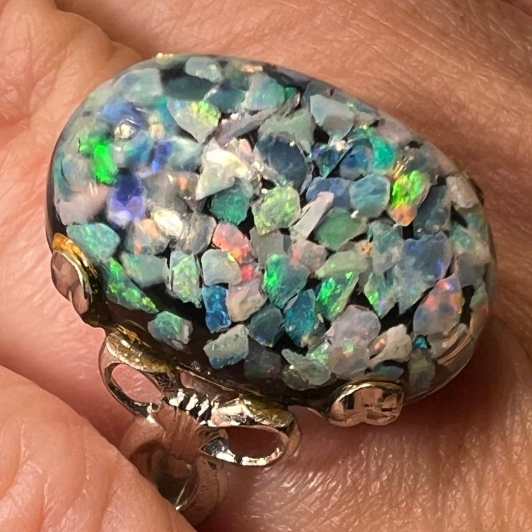 Australian Floating Black Bubble Opal Ring. 1950s *VIDEO*