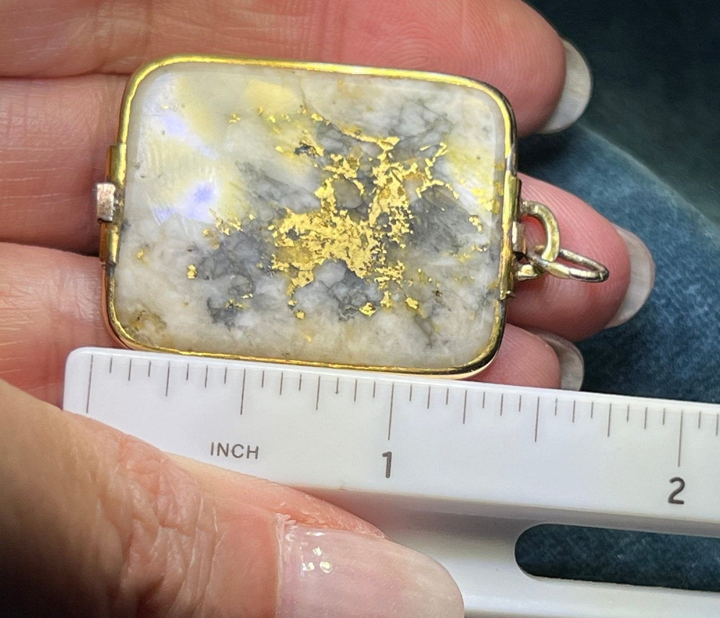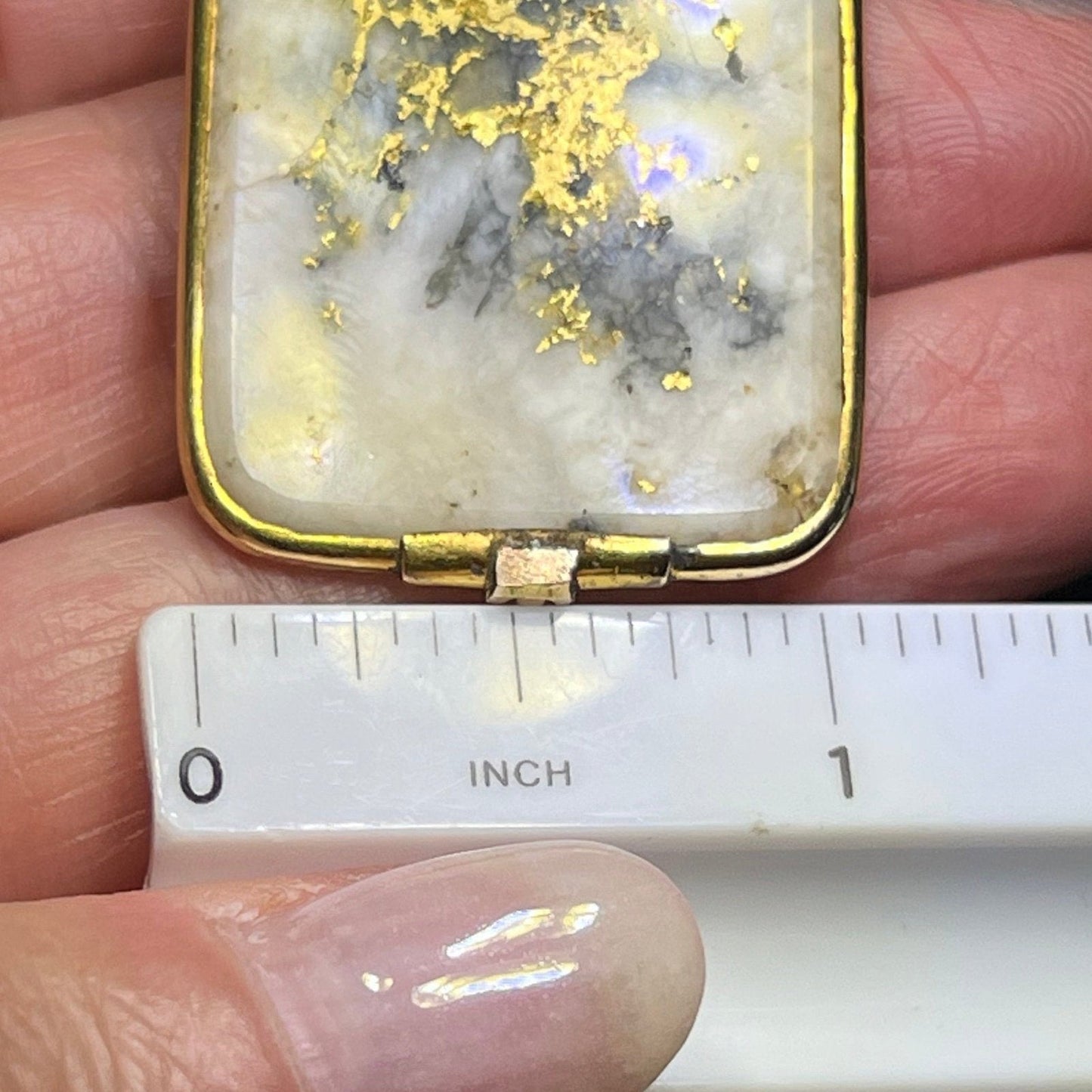 14k Yellow Gold ALASKAN Gold in Quartz Pendant. 1.75" + 12g