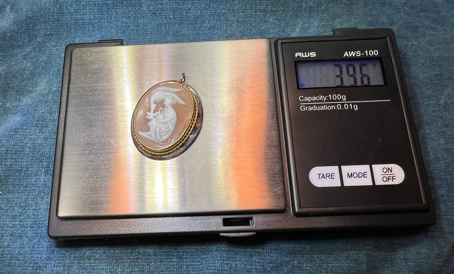 14k Gold Mythology Cameo Hebe Feeding Bird 1.3"