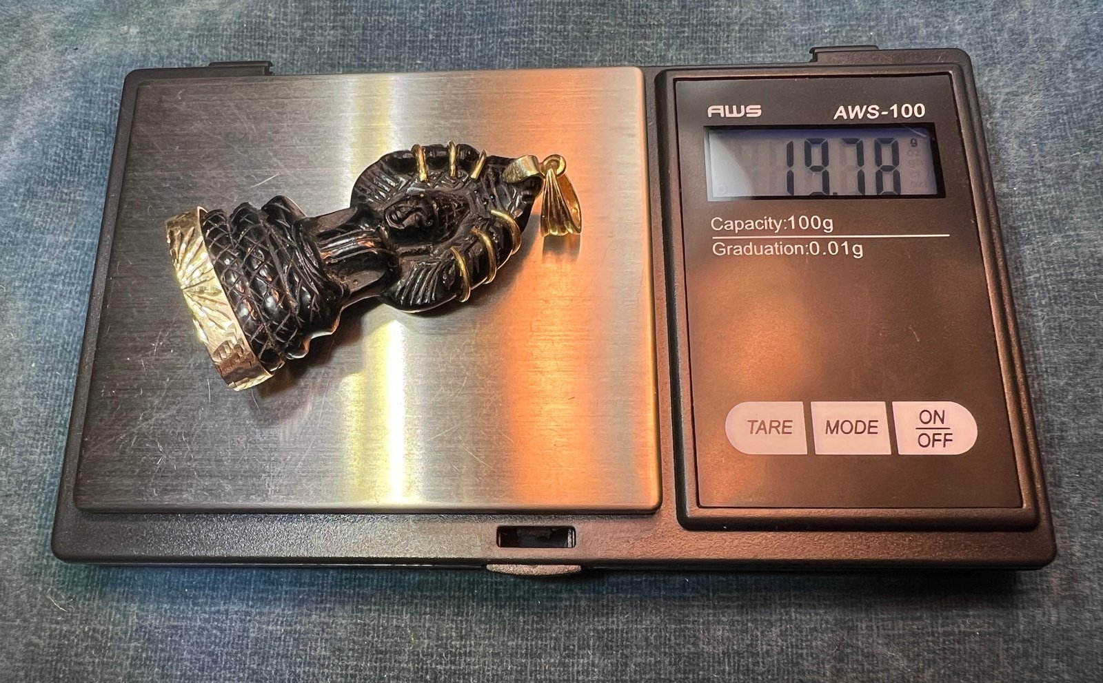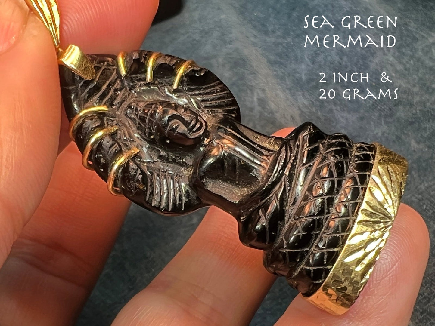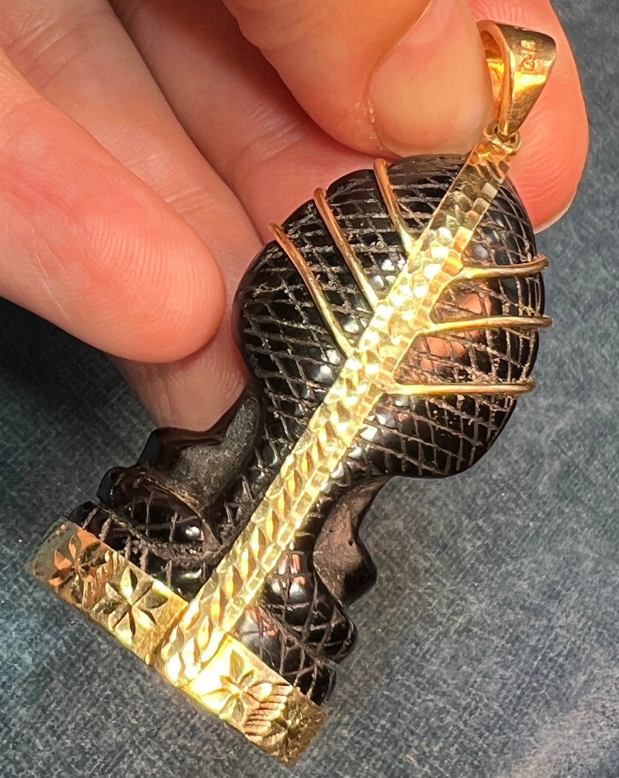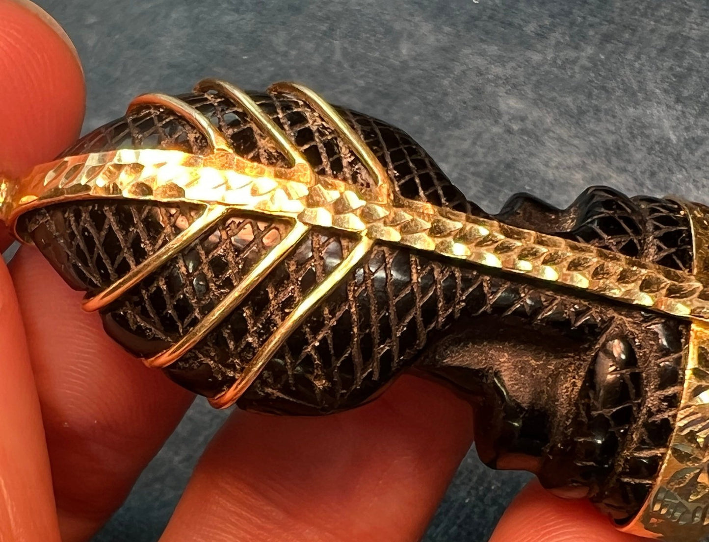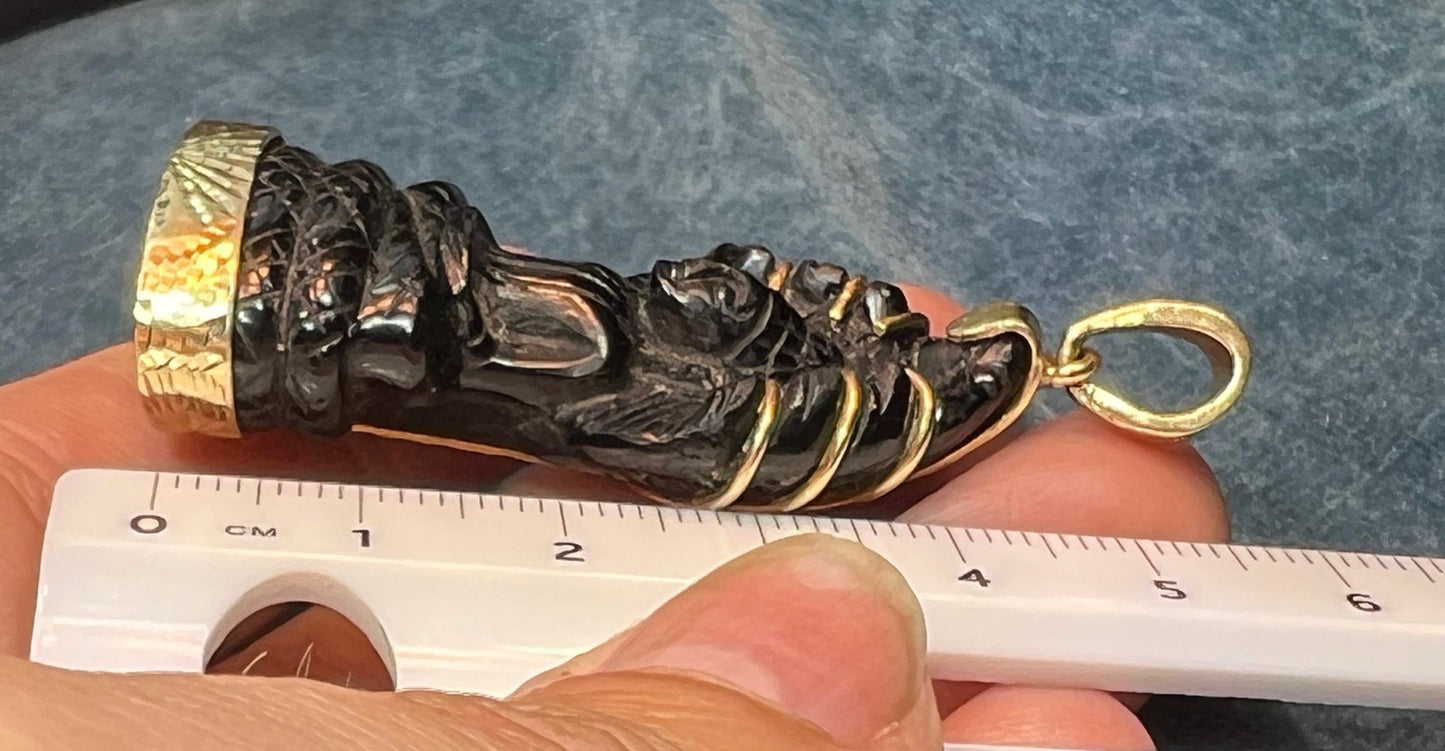 18k Yellow Gold Carved Black Jade NAGA Buddha Pendant. 2" + 20g