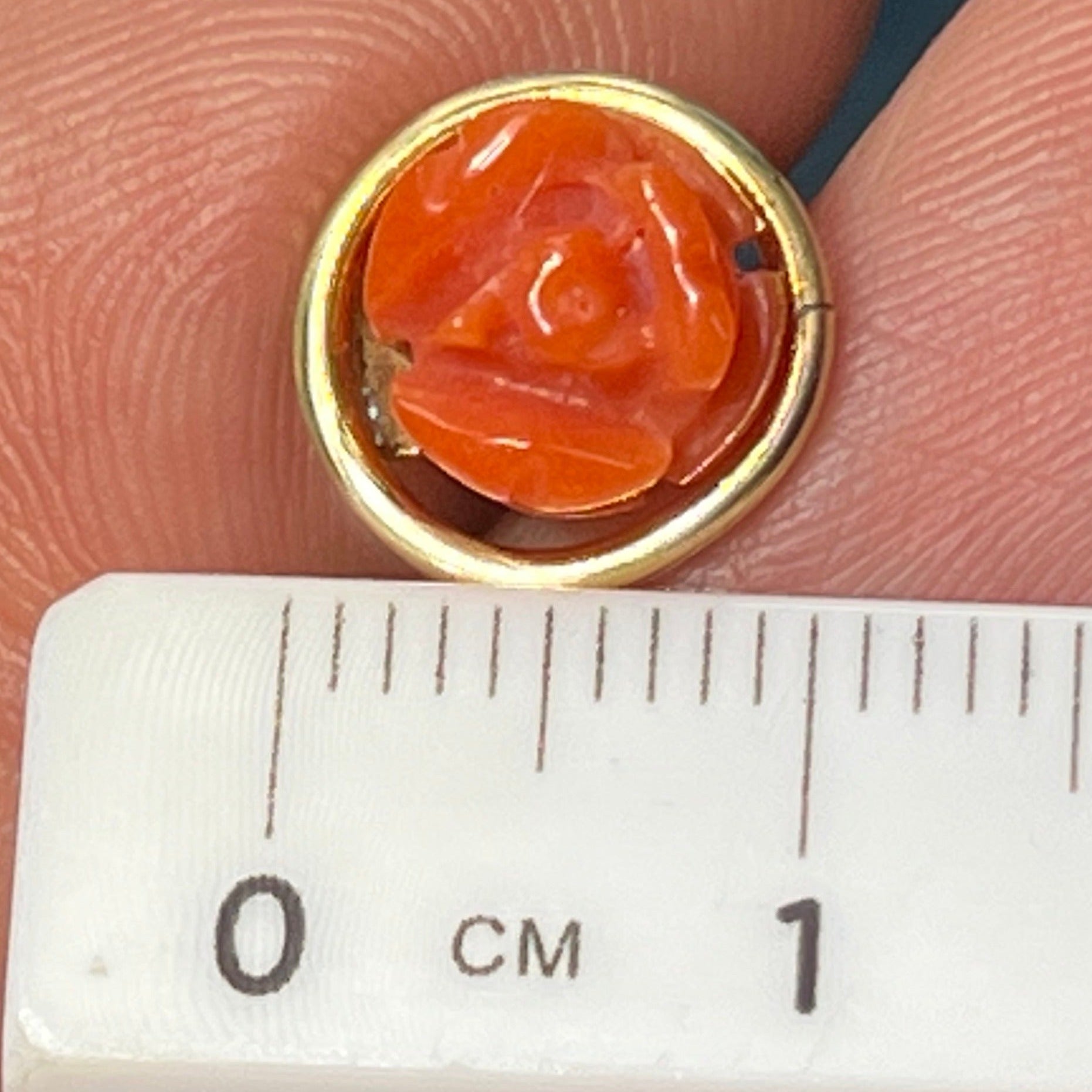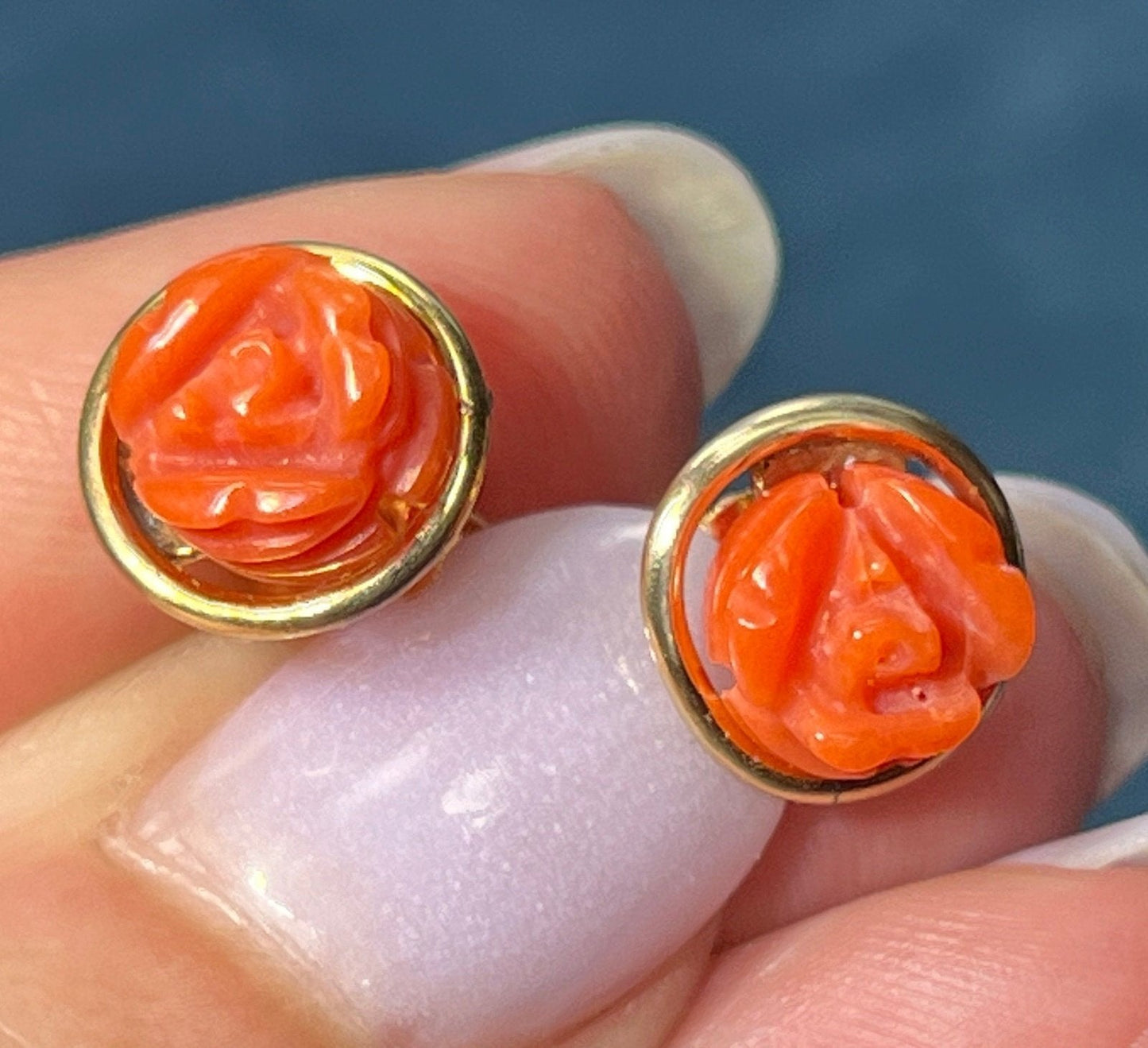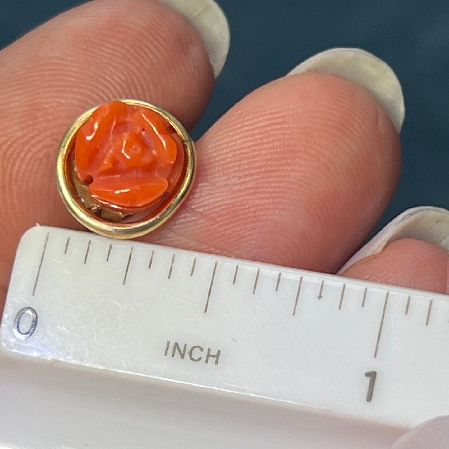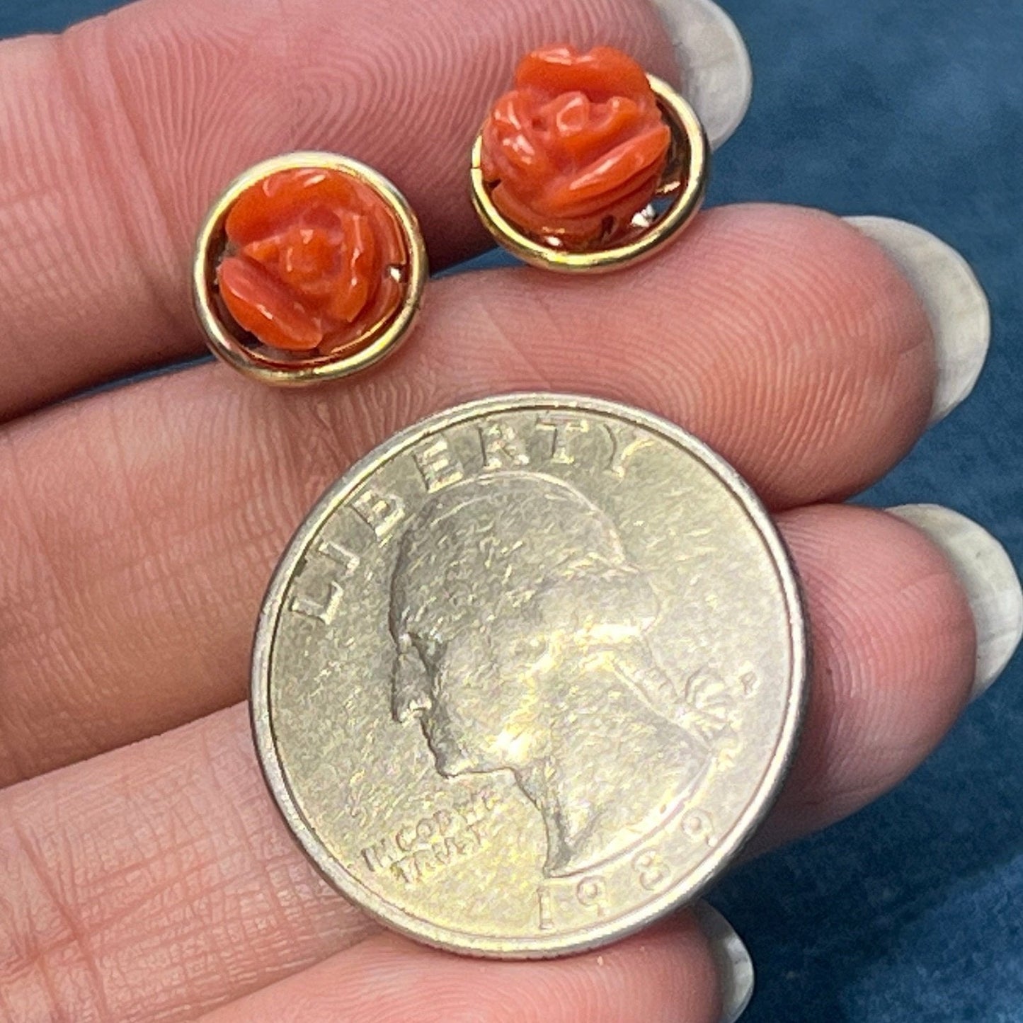 14k Yellow Gold Carved Red Coral Rosebud Earrings