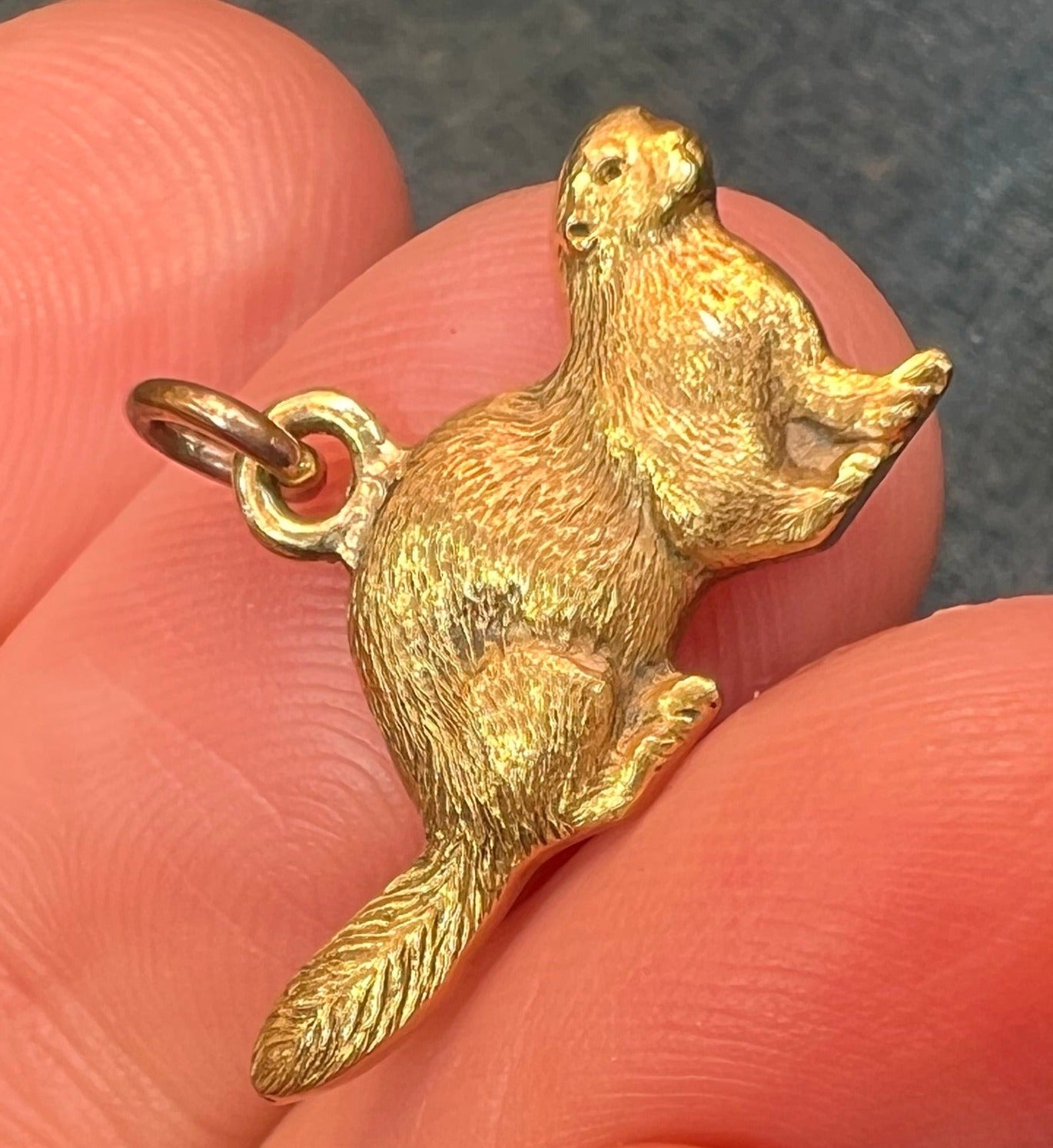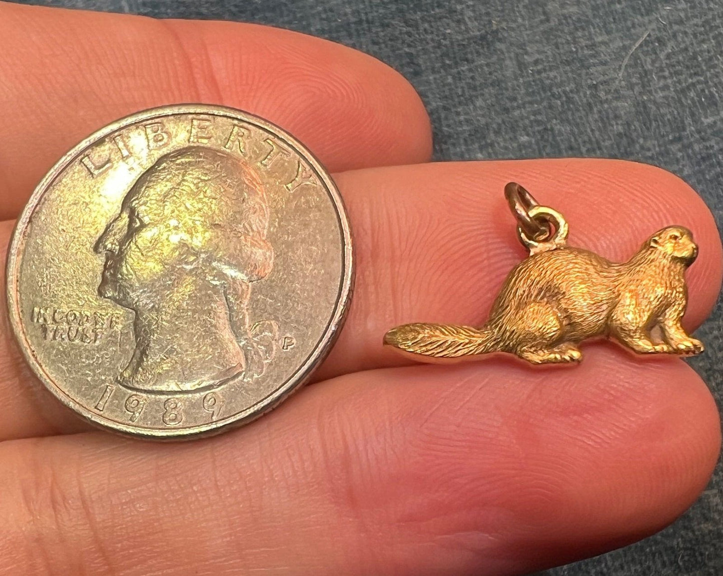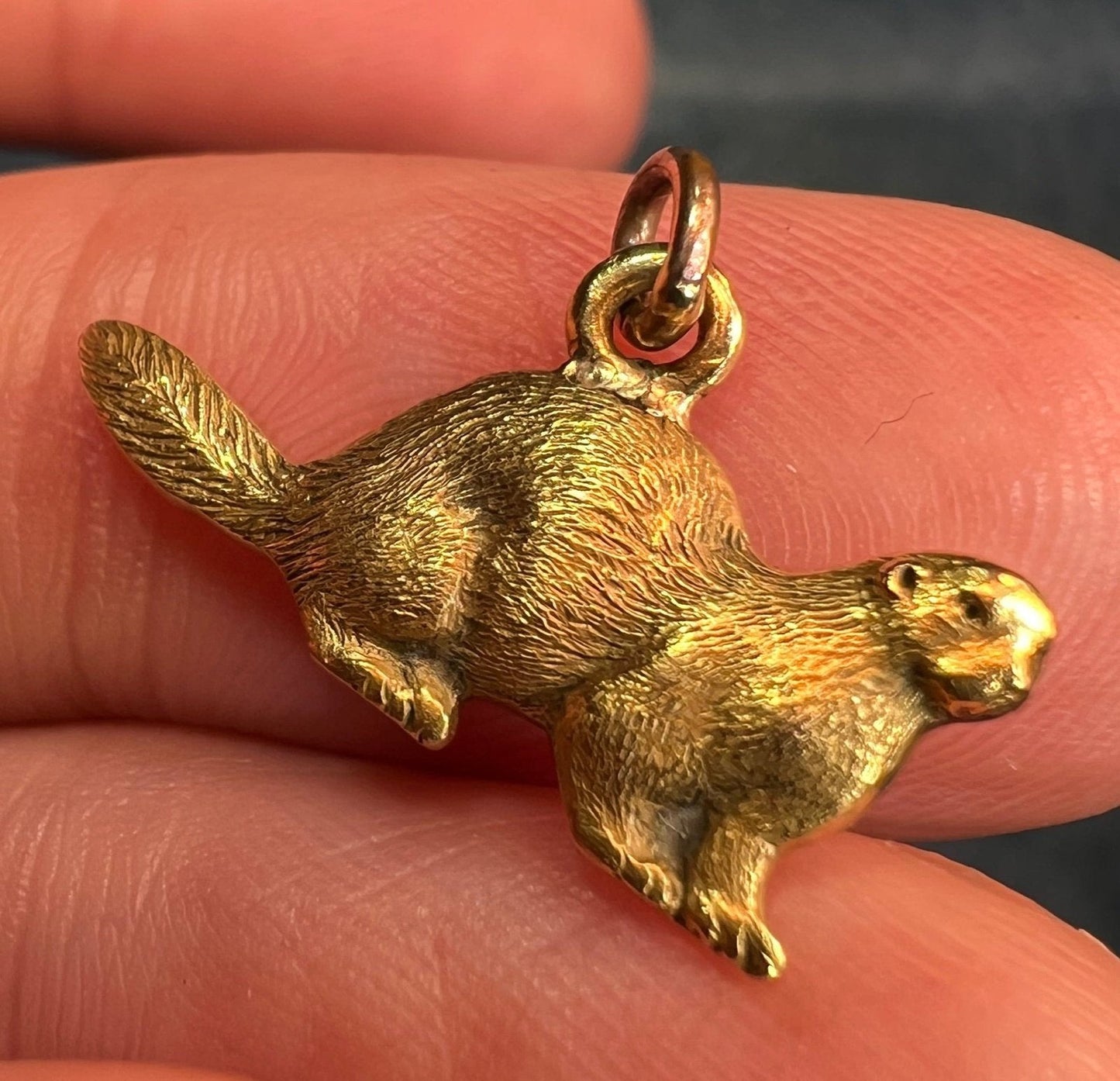 10k Yellow Gold River Otter Beaver Pendant. Dieges & Clust