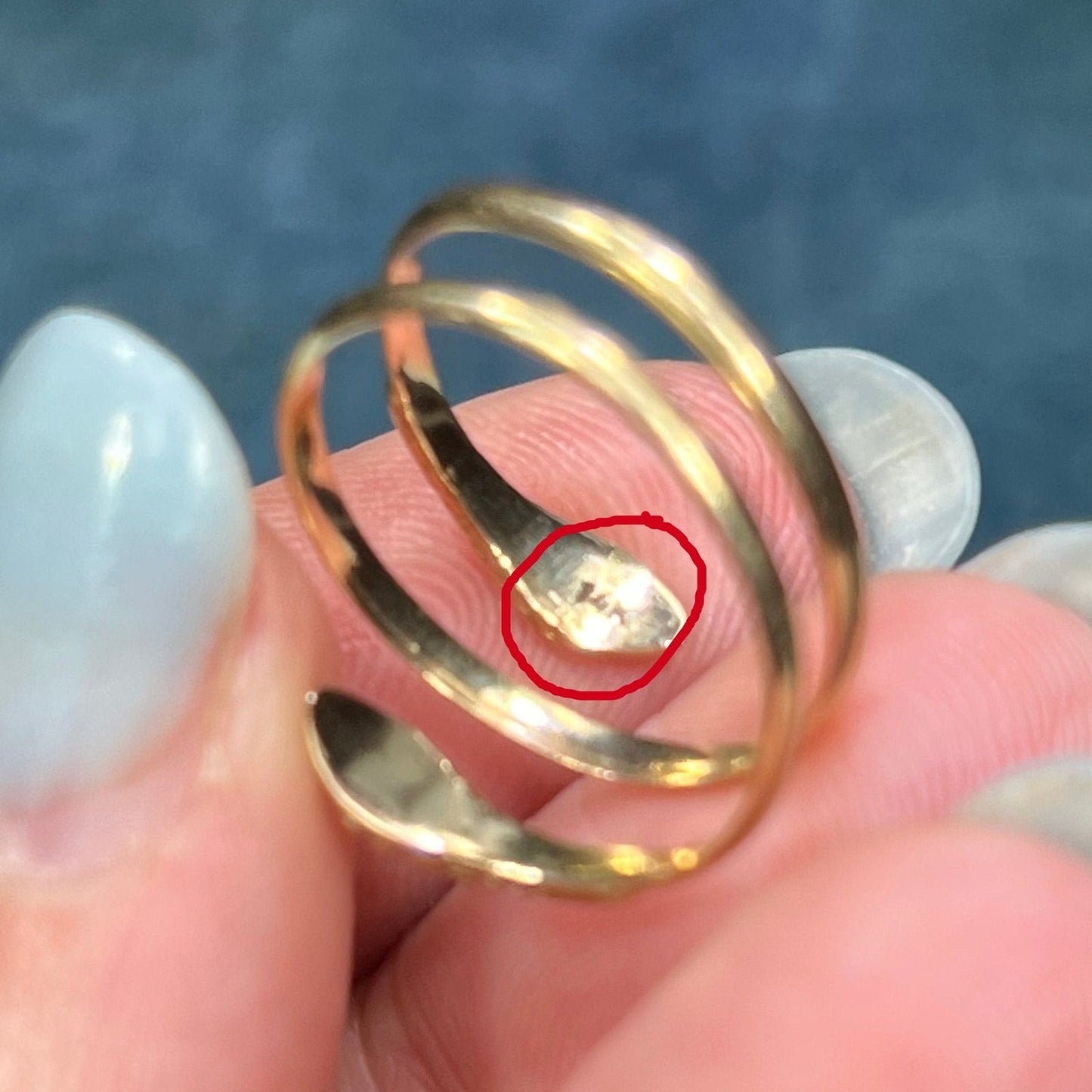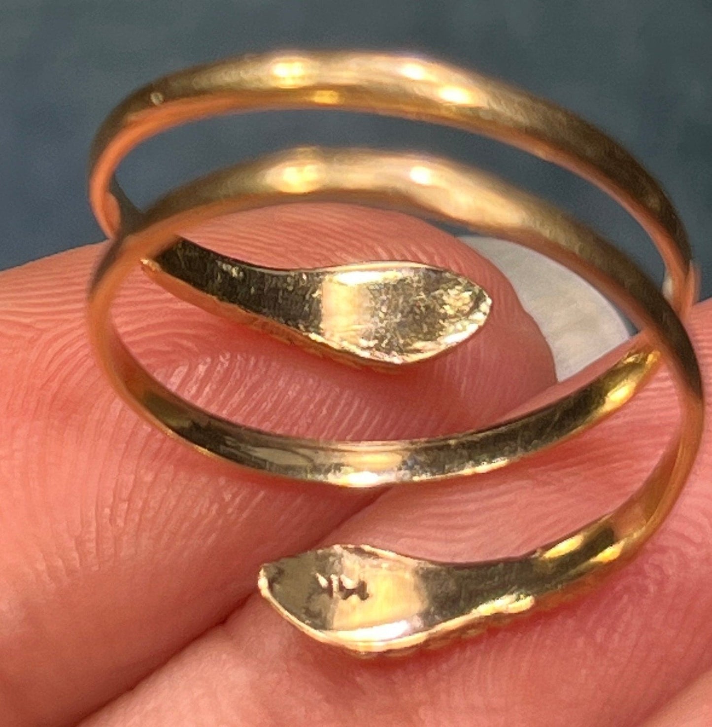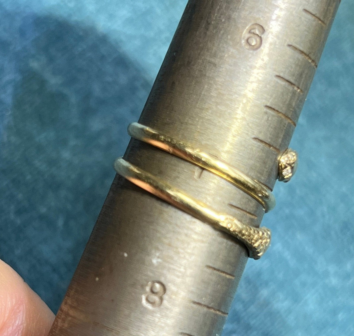 14k Yellow Gold Coiled Wide Antique 2 Head Snake Ring. Diamond Eyes