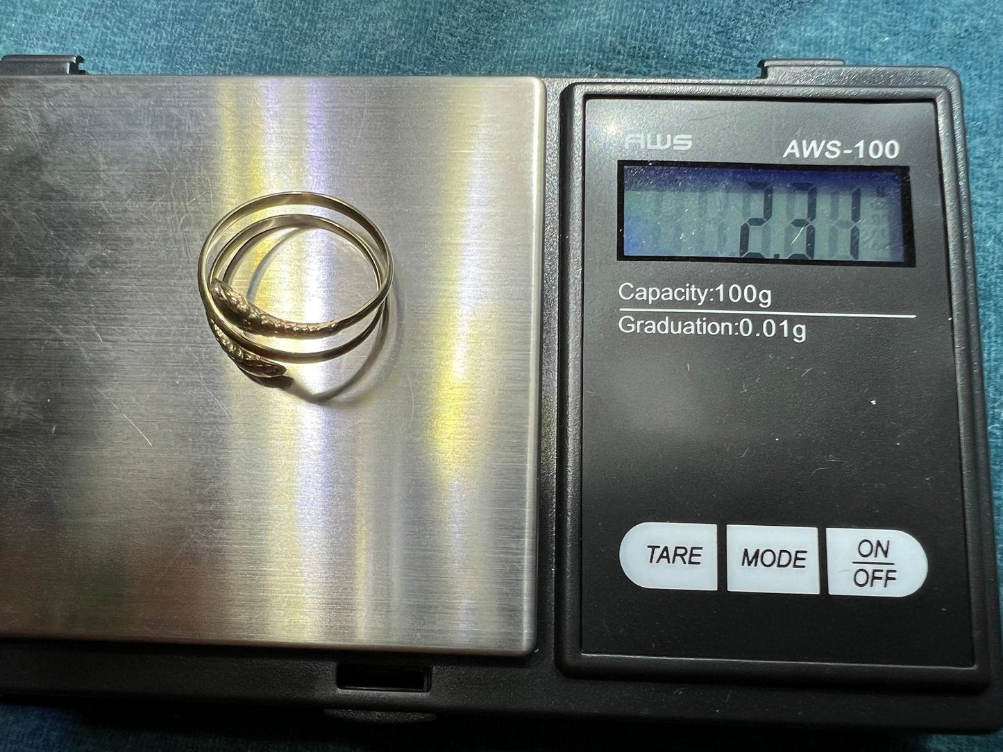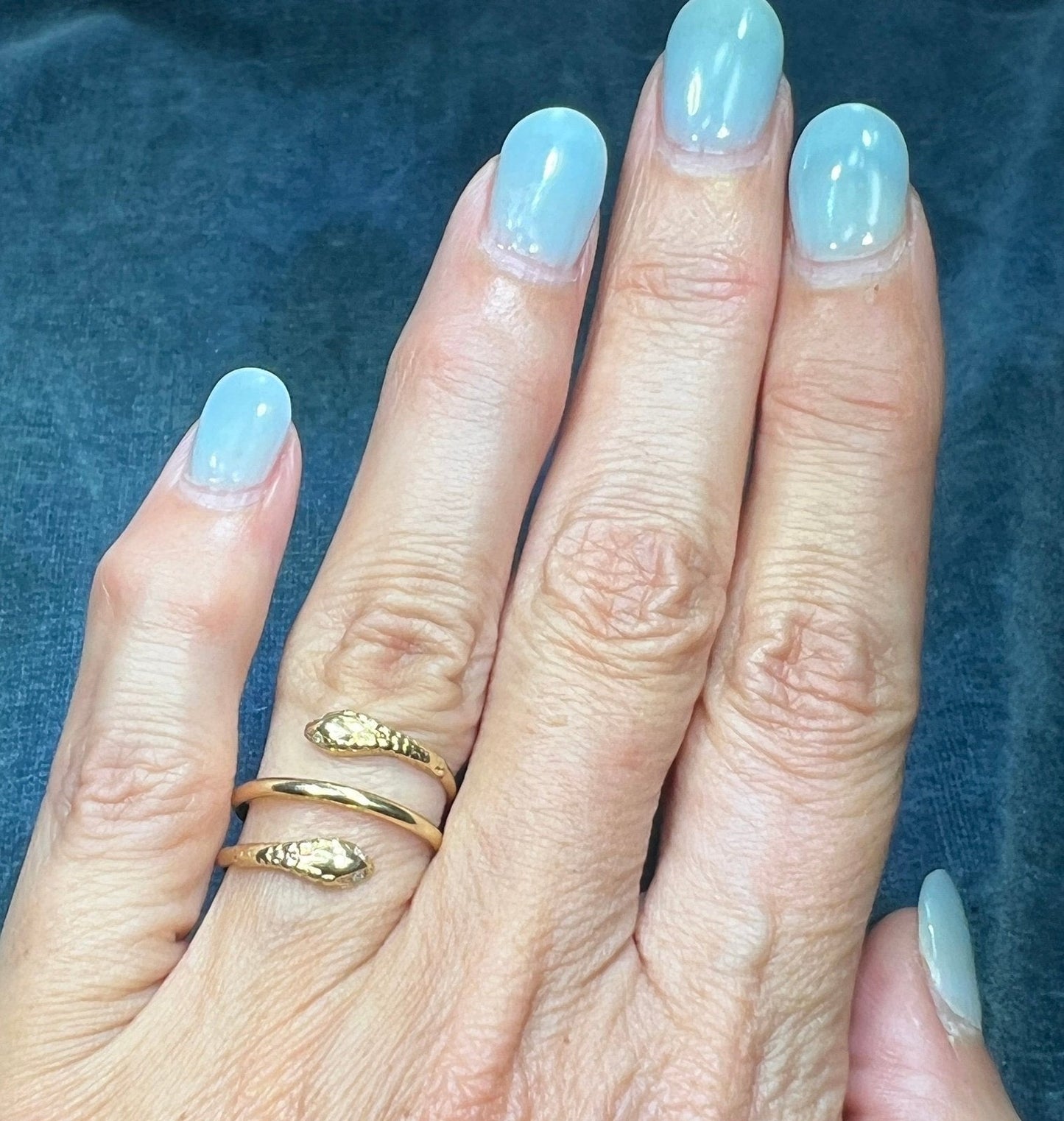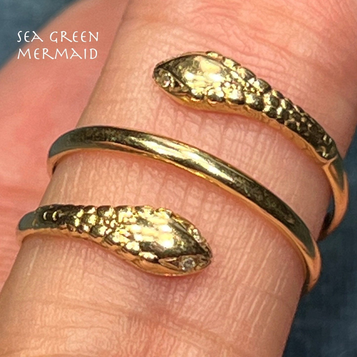 14k Yellow Gold Coiled Wide Antique 2 Head Snake Ring. Diamond Eyes