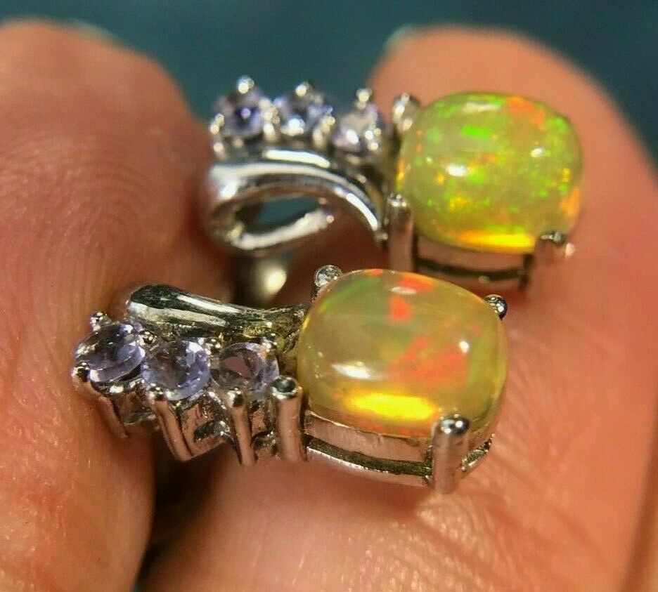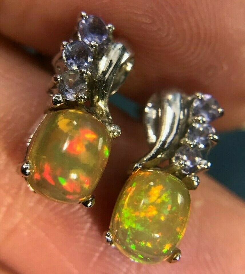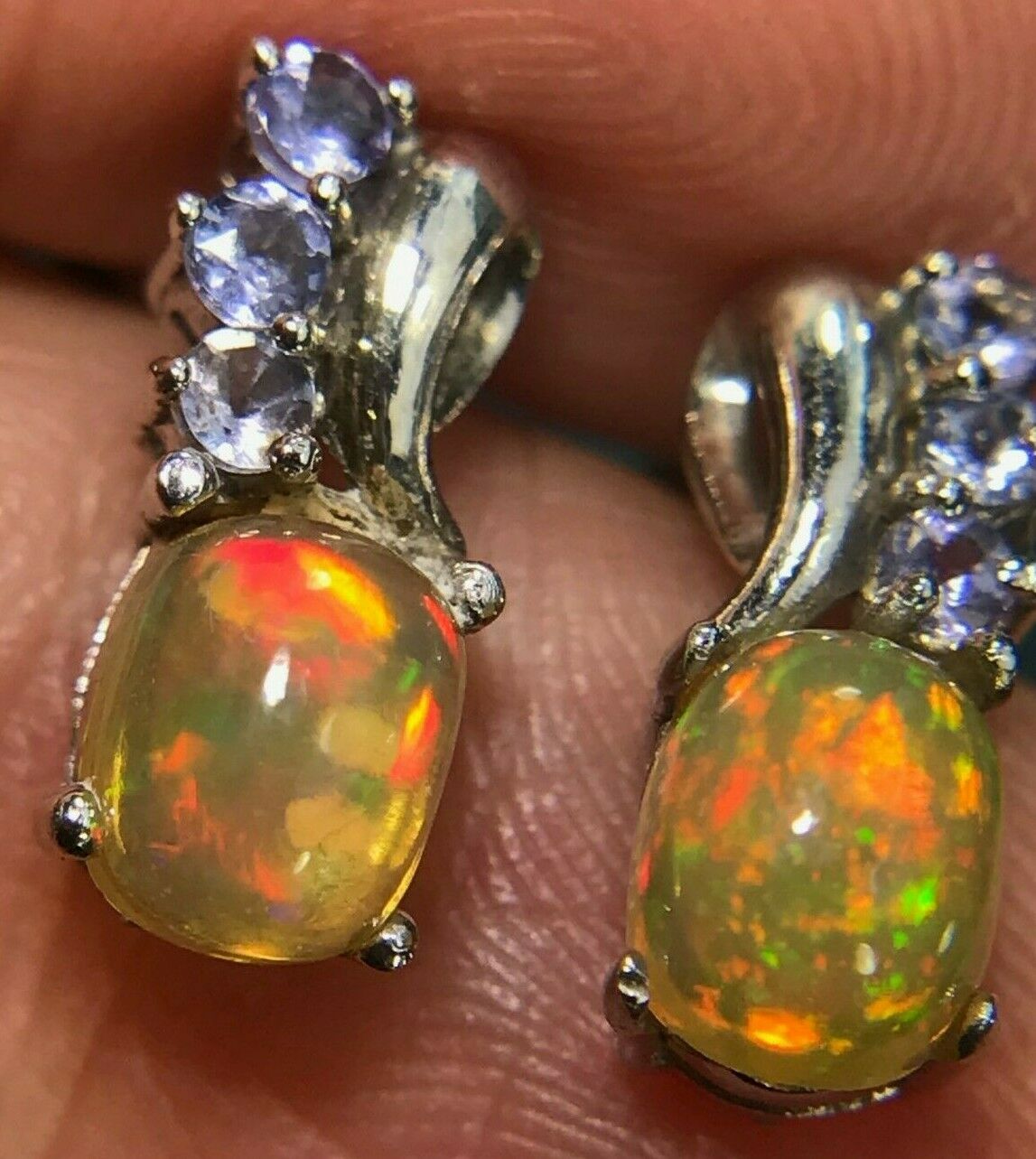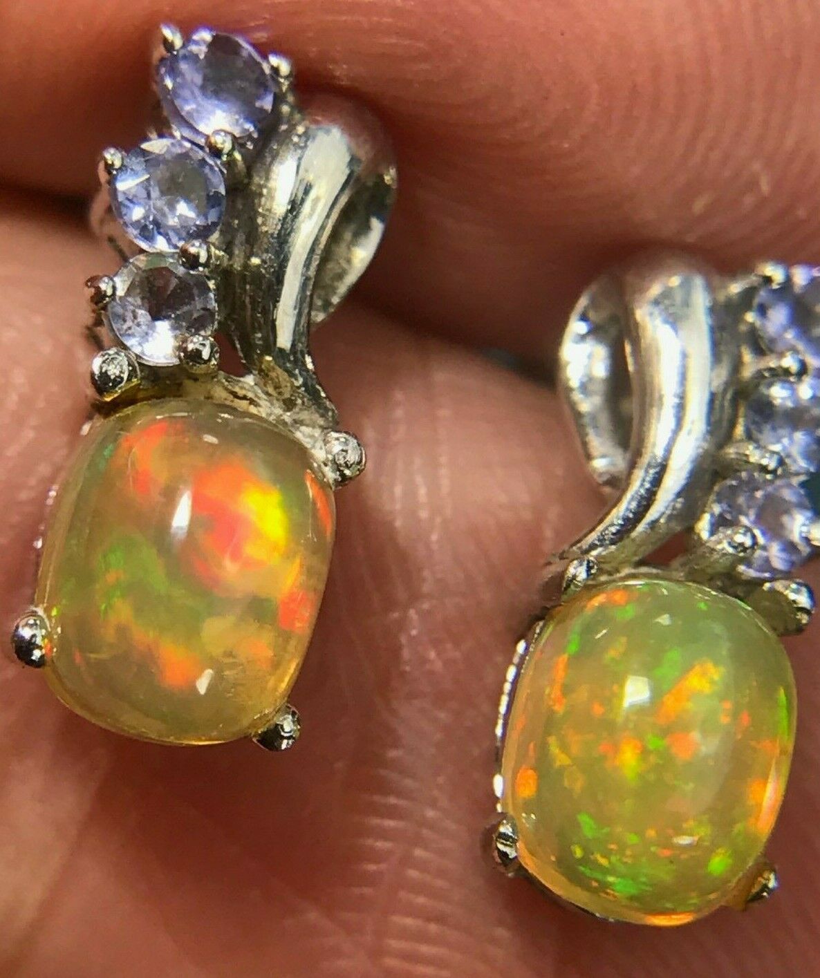 Ethiopian Welo Jelly Fire Opal Earrings w Periwinkle Tanzanite. 925. --K3L9J