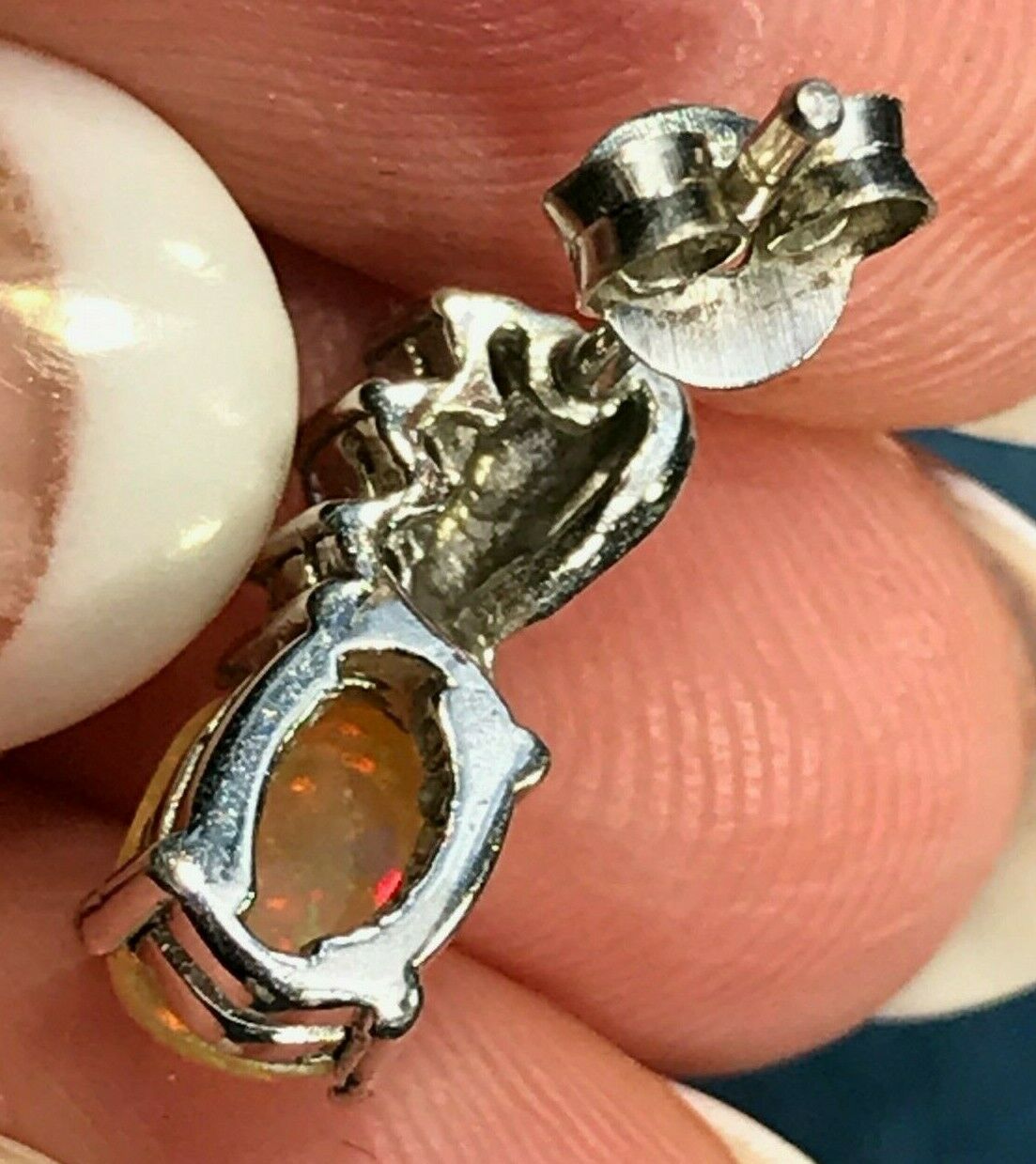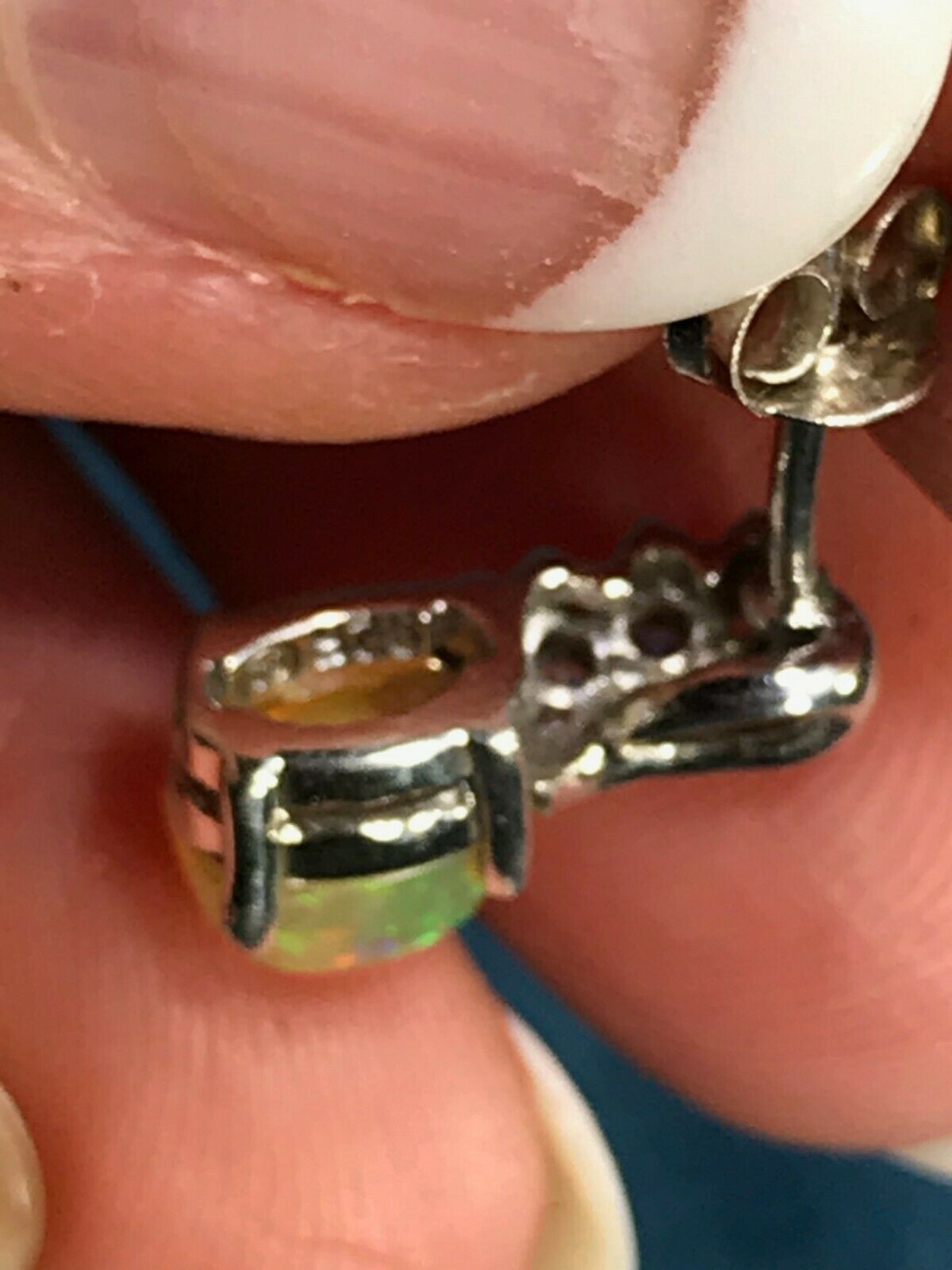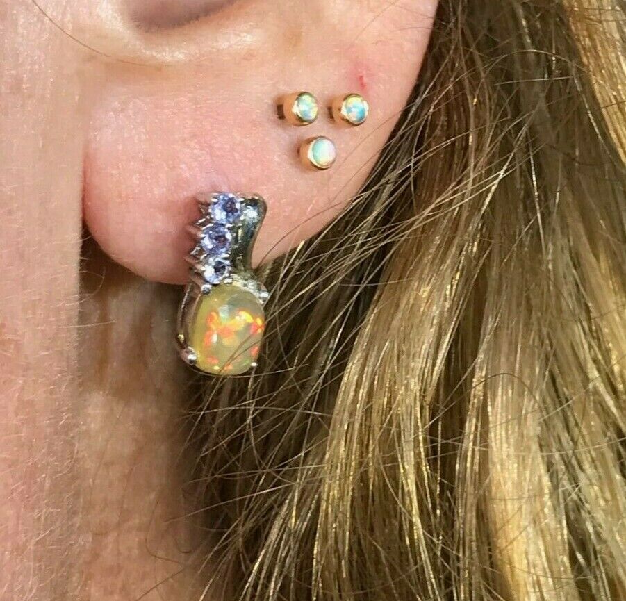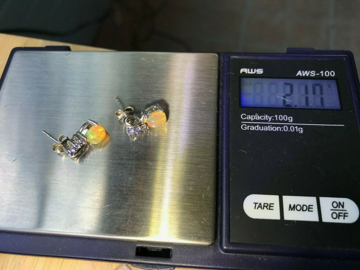 Ethiopian Welo Jelly Fire Opal Earrings w Periwinkle Tanzanite. 925. --K3L9J