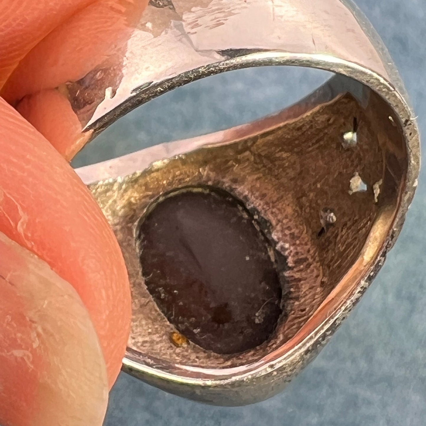 Mexican Black Opal Silver Signet Ring. 3/4" *Video*